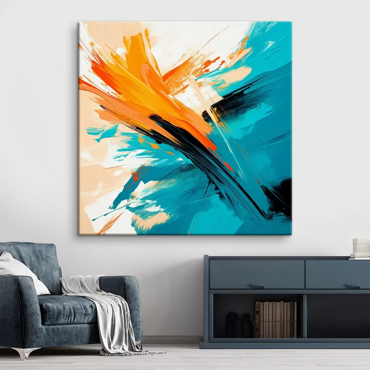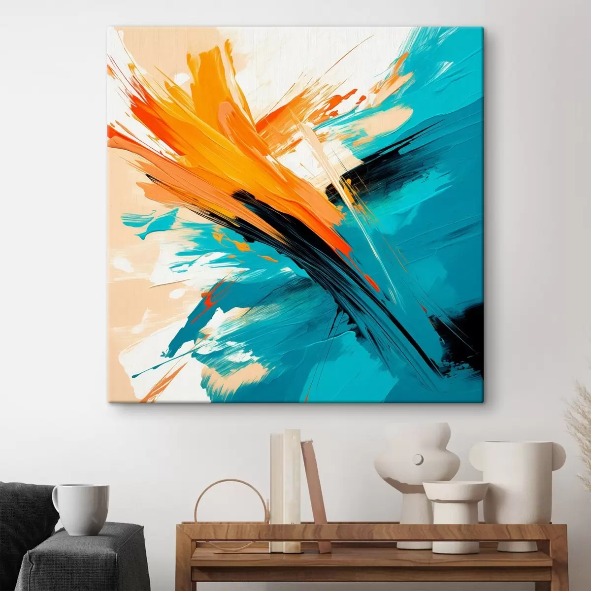 Tableau Une œuvre lumineuse aux tons turquoise et terre cuite, dans un style pictural contemporain s48855
