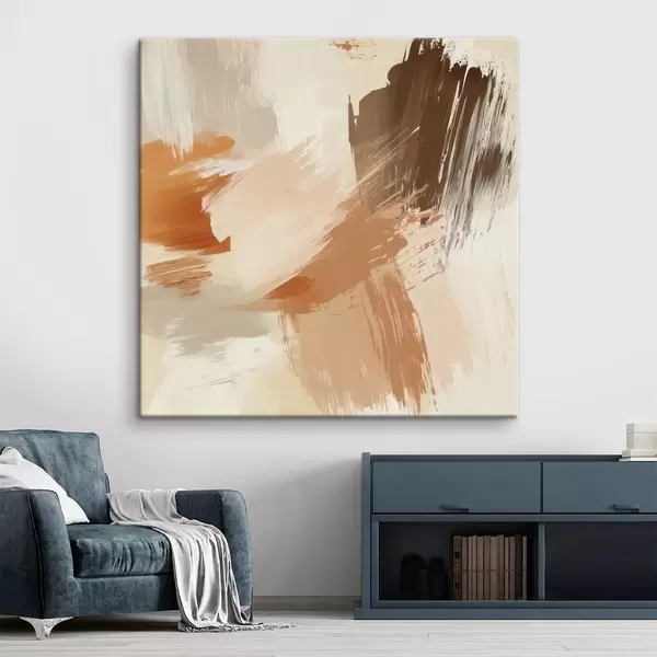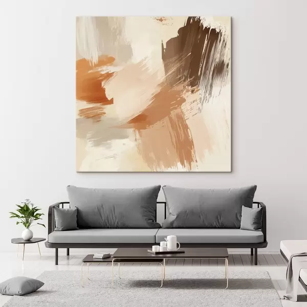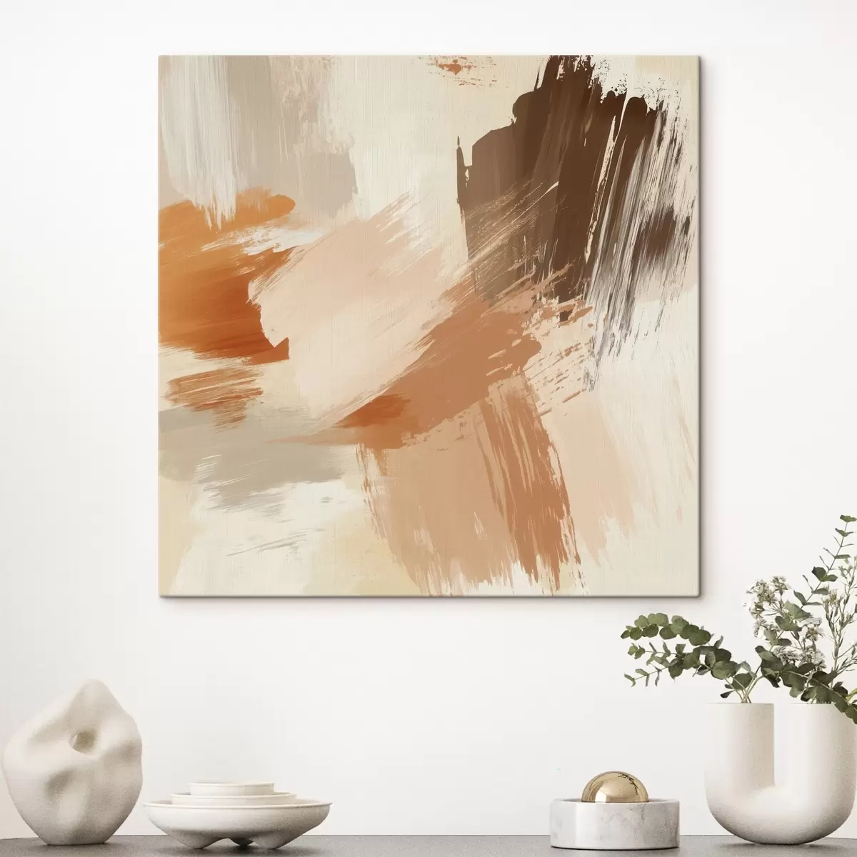Tableau Imitation de coups de pinceau abstraits dans des tons sable et bruns s48857