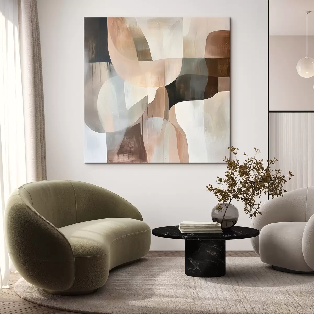 Tableau Composition abstraite dans une palette de tons chauds beige-corail Nr s48859