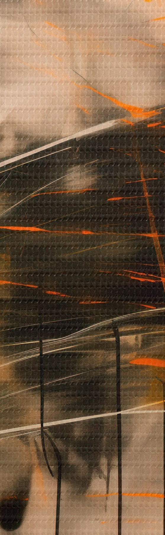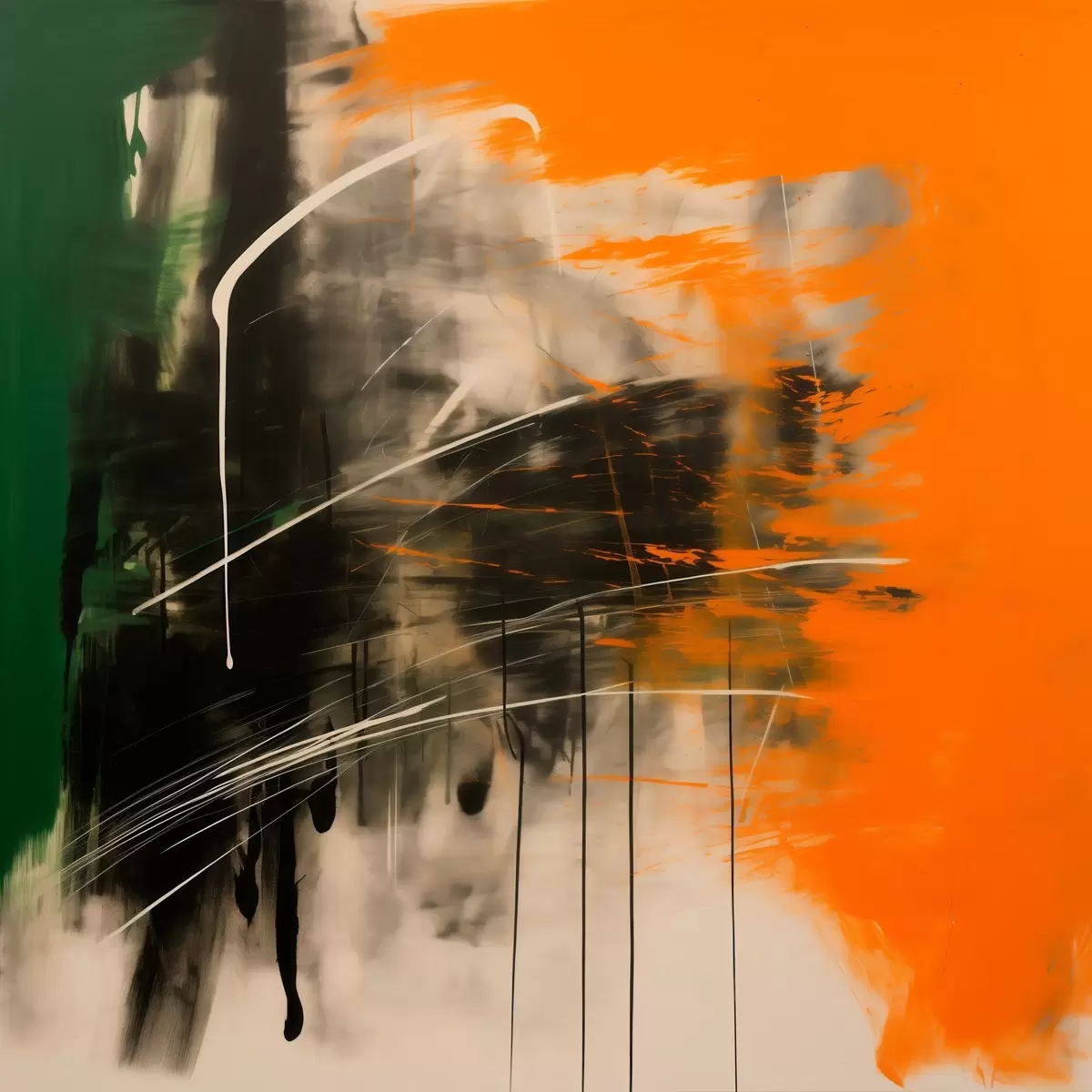 Tableau Une œuvre abstraite aux touches orange et vertes, dans un style pictural contemporain s48866
