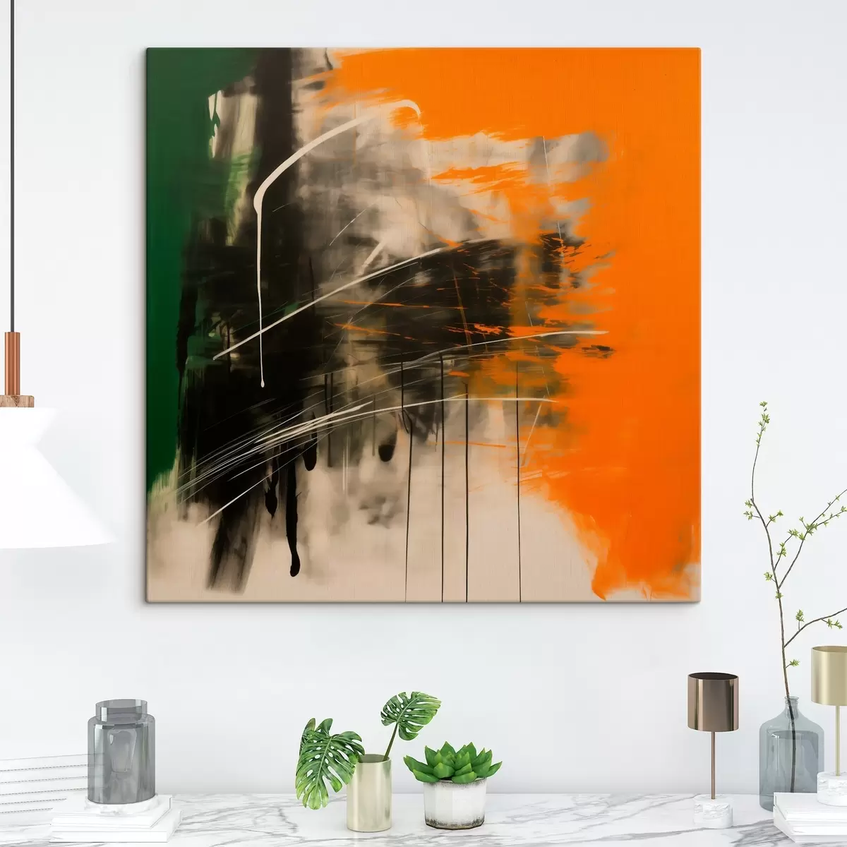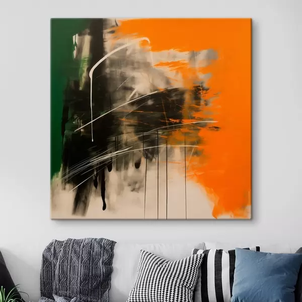 Tableau Une œuvre abstraite aux touches orange et vertes, dans un style pictural contemporain Nr s48866