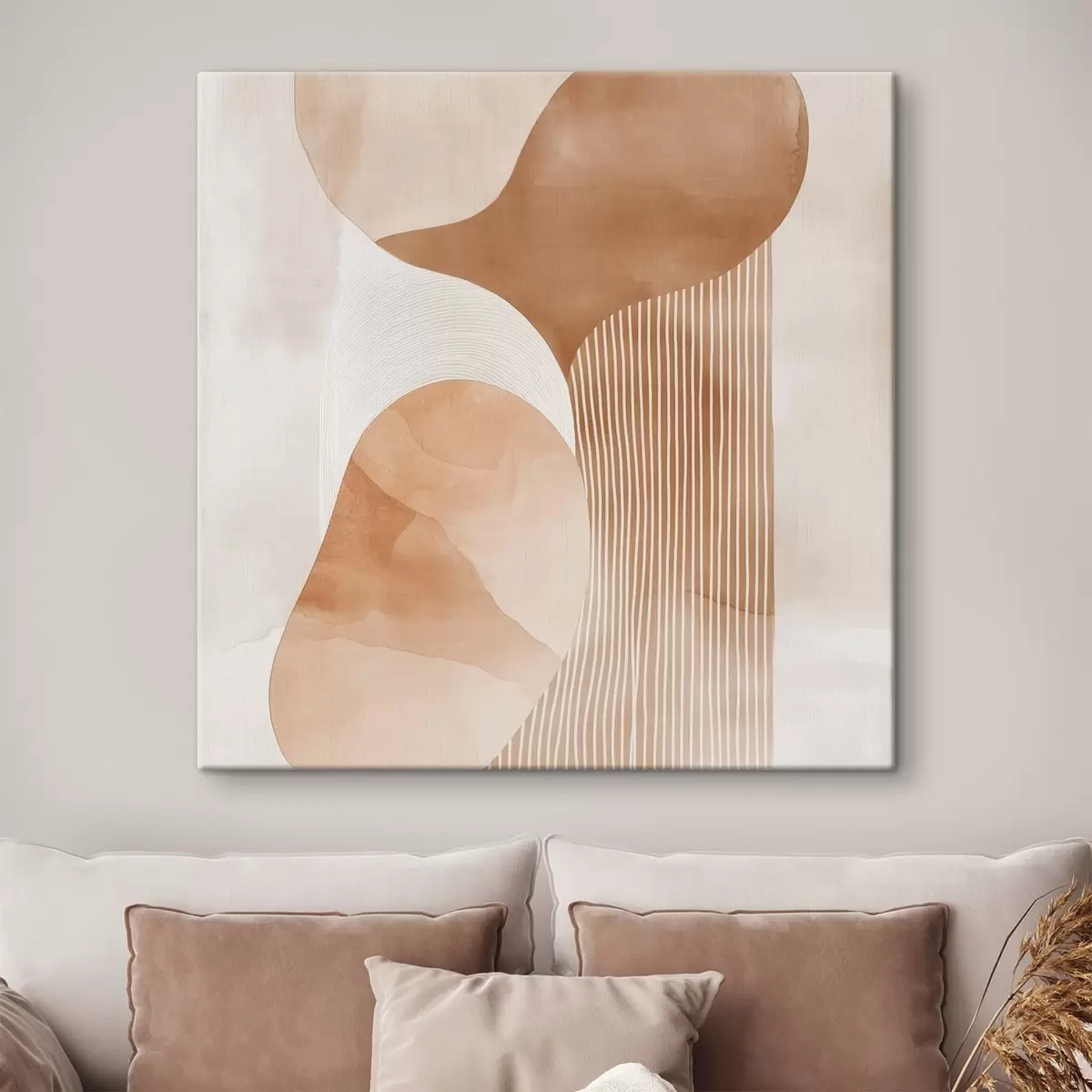 Tableau Objets décoratifs dans une palette de tons beiges et corail chaleureux, avec un effet aquarelle s48870