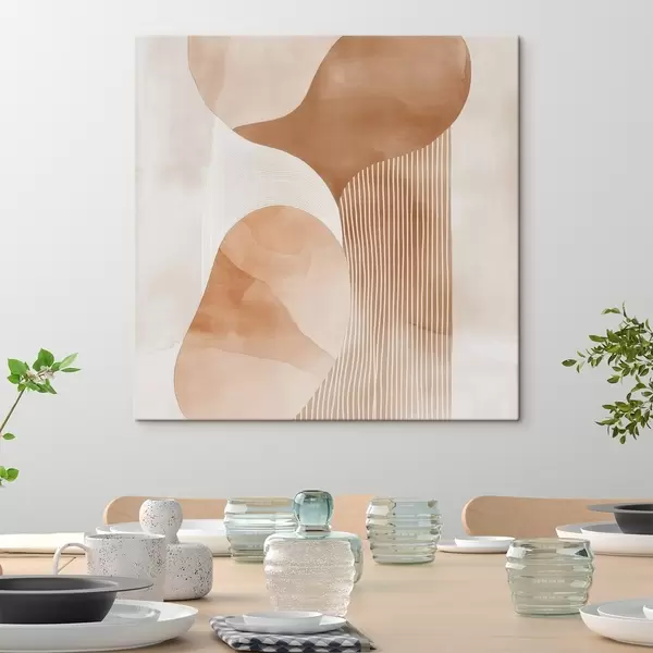 Tableau Objets décoratifs dans une palette de tons beiges et corail chaleureux, avec un effet aquarelle Nr s48870