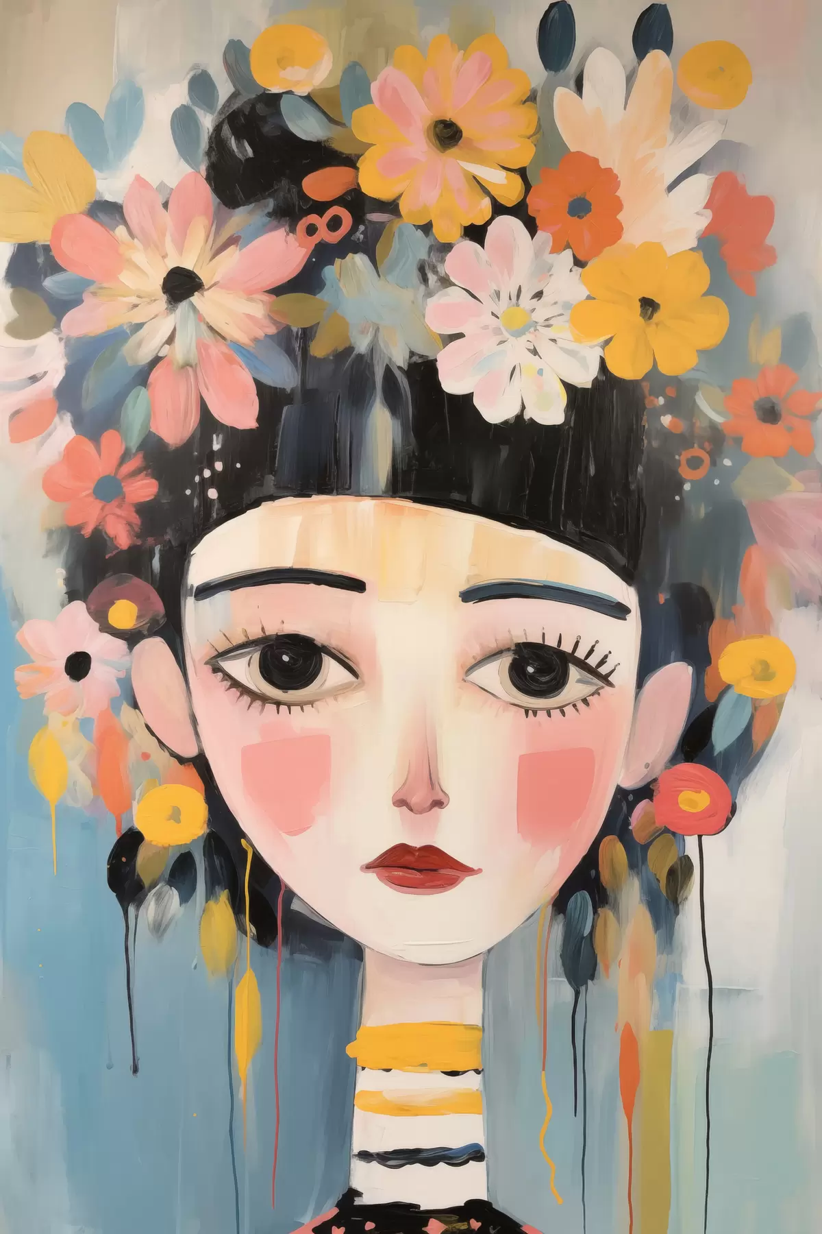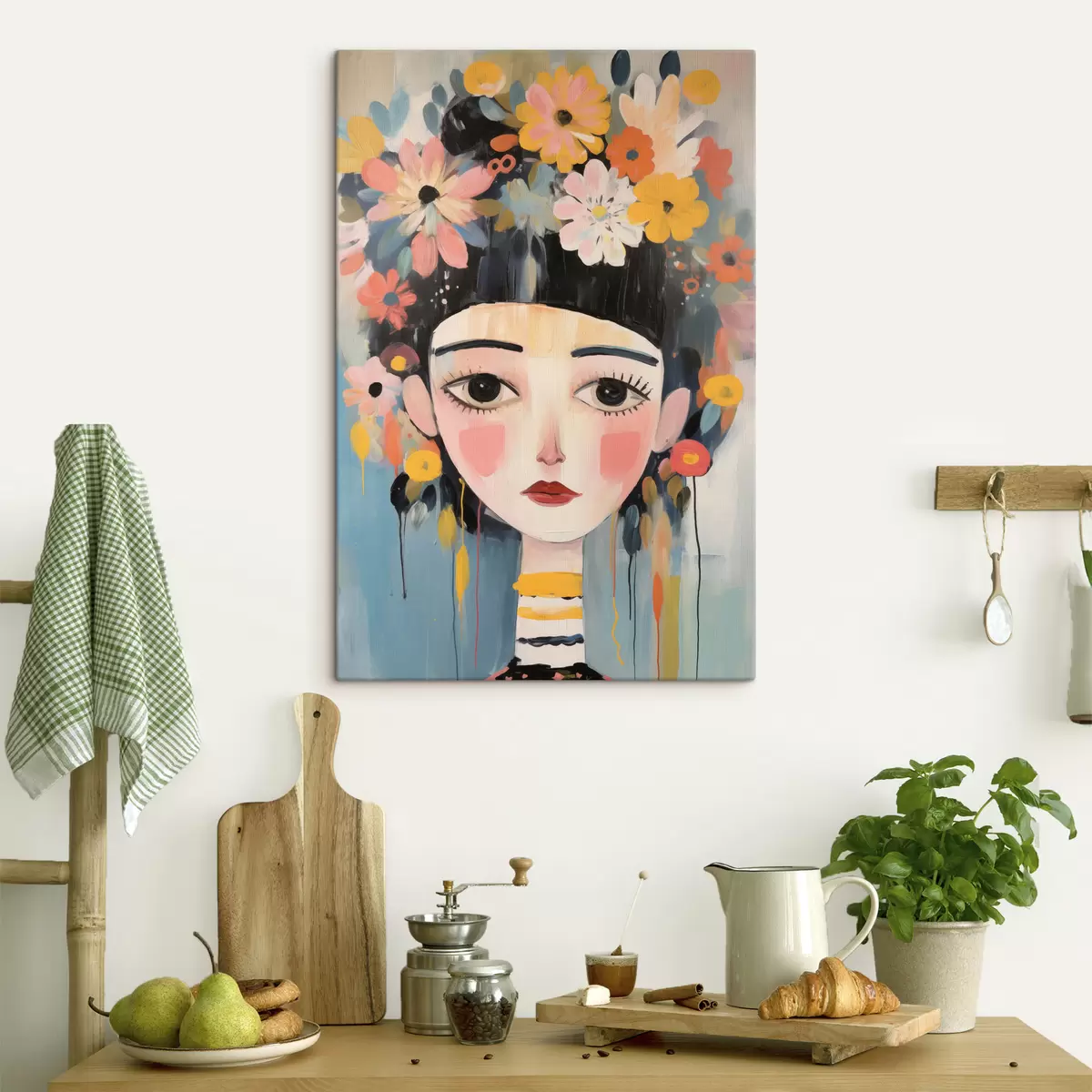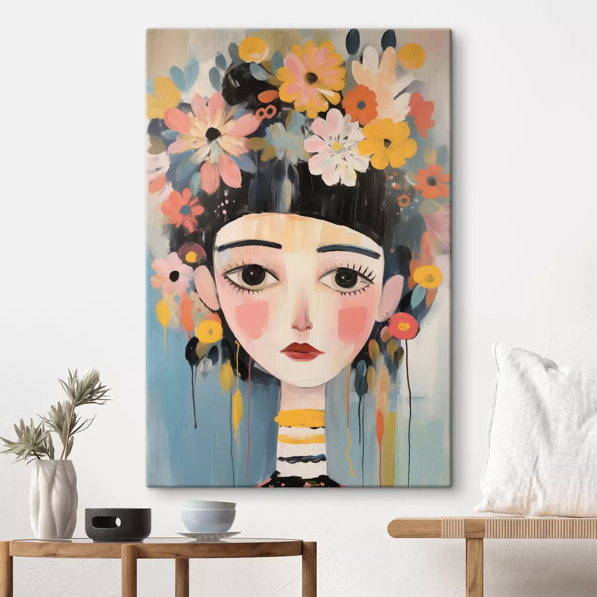 Tableau Portrait d'une femme avec des fleurs dans les cheveux, style abstrait Nr s48935