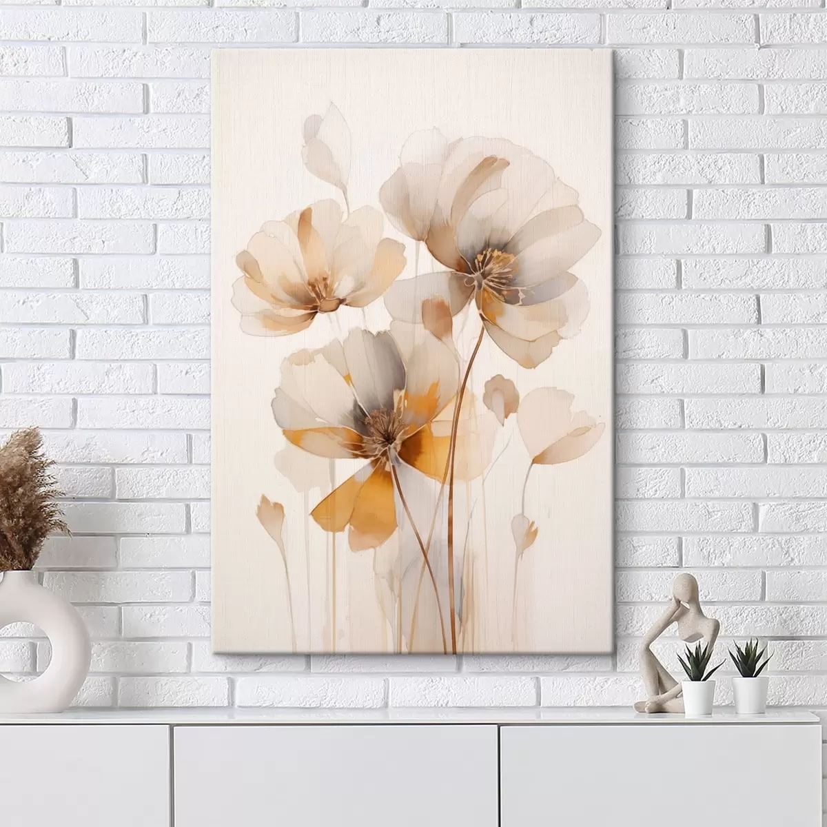 Trois types de matériaux peuvent être commandés : Economic Canvas - matériau dense et durable pour l'impression numérique, identique à la toile de peintre, surface imperméable, reproduction réaliste des détails, matériau à grain moyen. Premium Canvas - la texture ressemble à celle d'une toile de peintre (petits fils entrelacés). Reproduction douce et détaillée de l'image sur une surface mate. Eco-Premium - tissu 100 % coton de haute qualité. Grâce aux fibres naturelles de coton, le matériau est durable et résistant à l'usure. Excellente reproduction des couleurs et des détails.