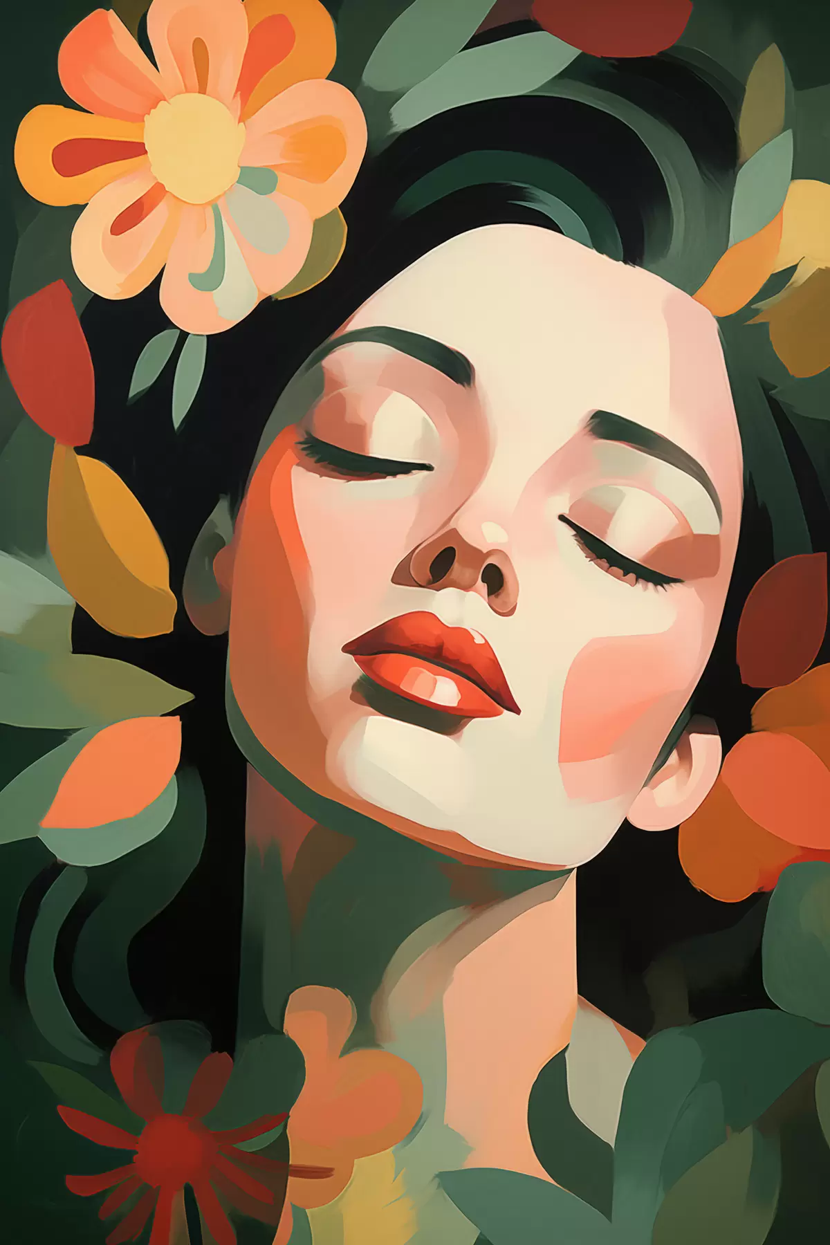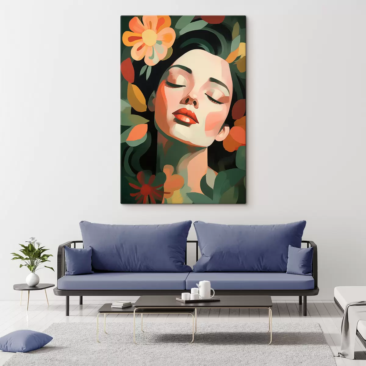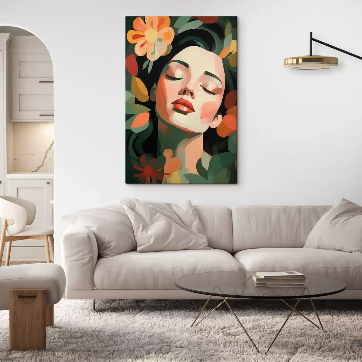 Tableau Portrait de femme avec des fleurs Nr s48959