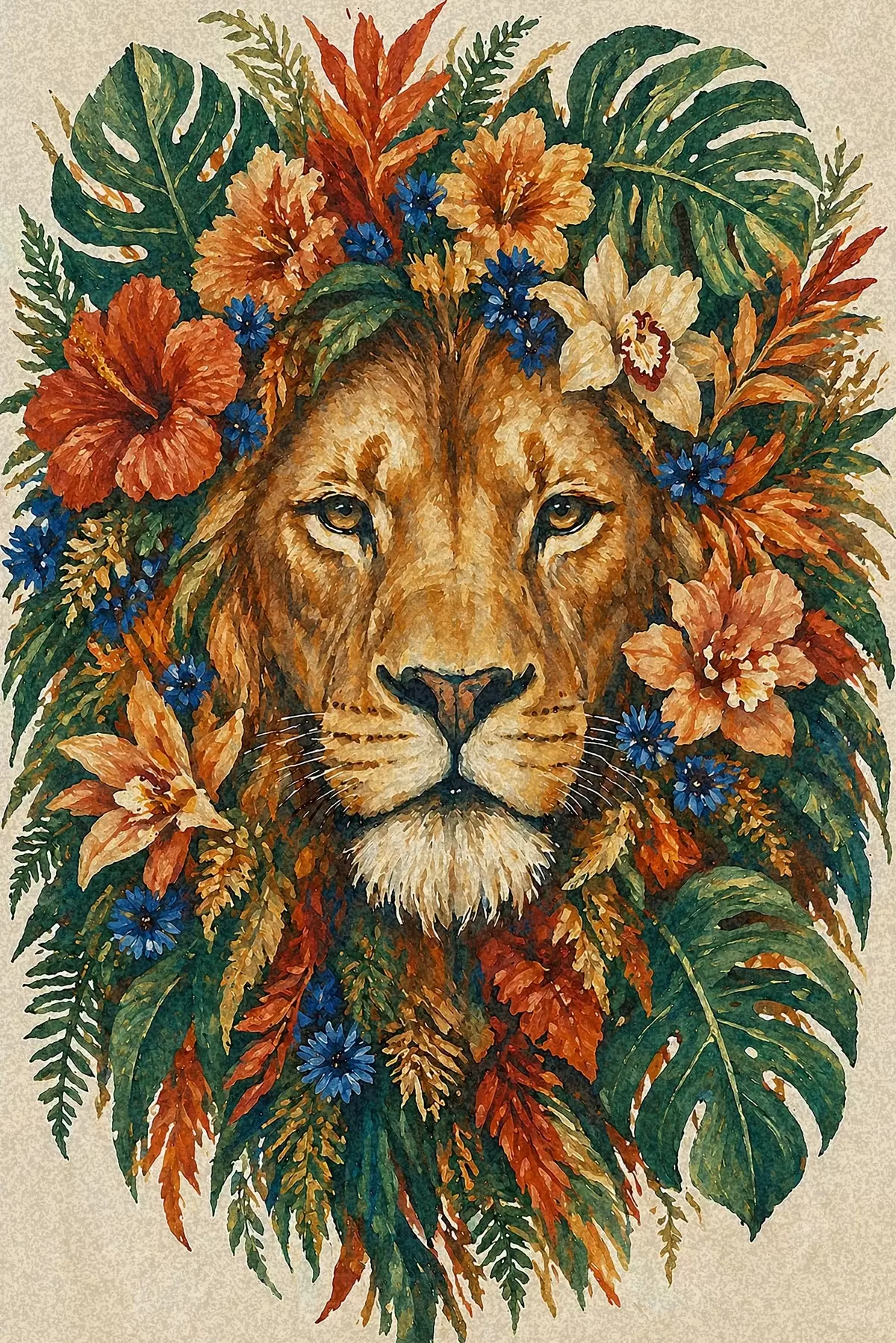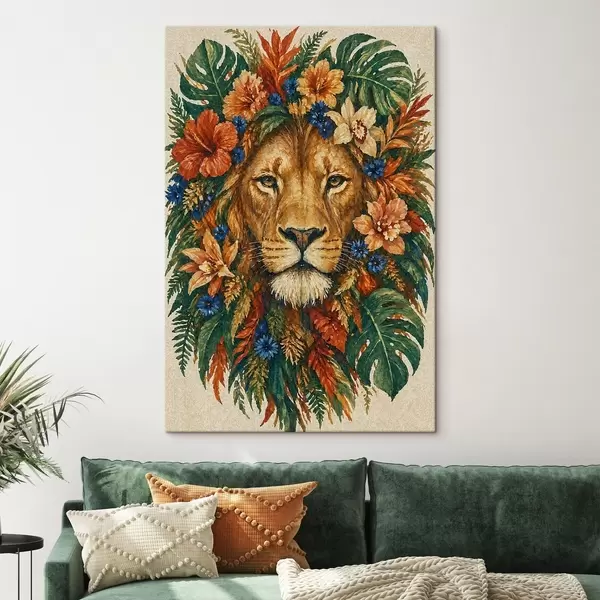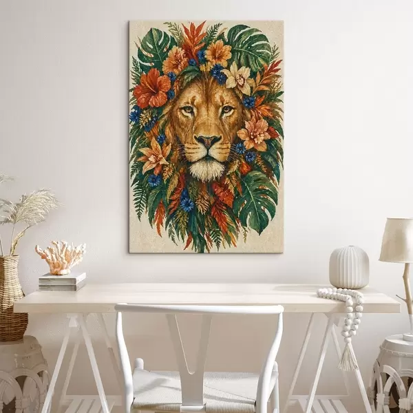 Tableau Lion avec des fleurs s49037