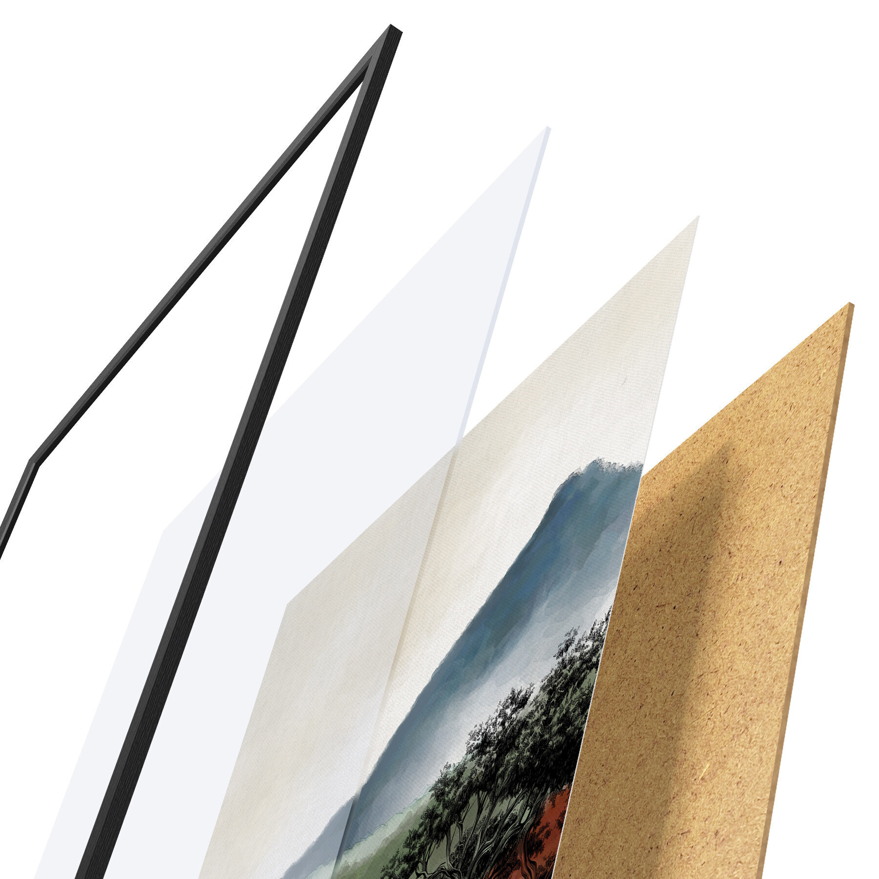 L’affiche encadrée est composée d’un cadre, d’un plexiglas, d’une image imprimée et d’un support en aggloméré. Elle est prête à être accrochée au mur grâce aux fixations situées à l’arrière.