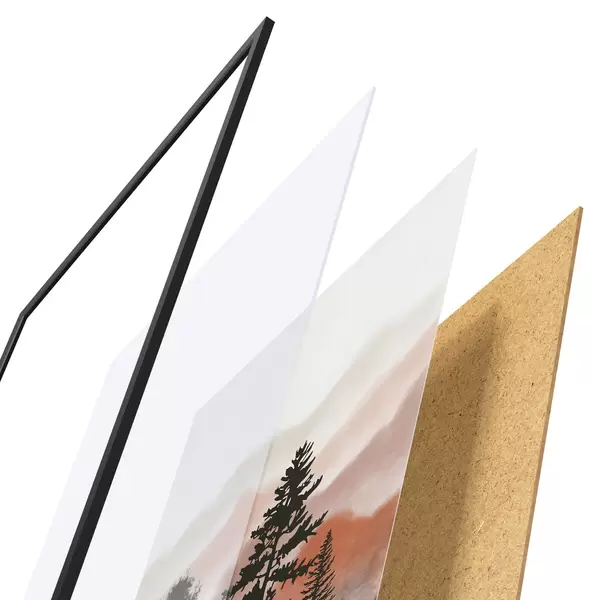 L’affiche encadrée est composée d’un cadre, d’un plexiglas, d’une image imprimée et d’un support en aggloméré. Elle est prête à être accrochée au mur grâce aux fixations situées à l’arrière.
