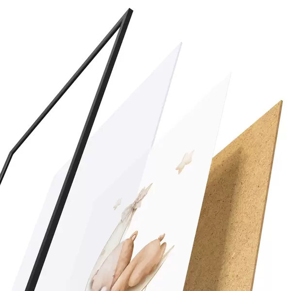 L’affiche encadrée est composée d’un cadre, d’un plexiglas, d’une image imprimée et d’un support en aggloméré. Elle est prête à être accrochée au mur grâce aux fixations situées à l’arrière.