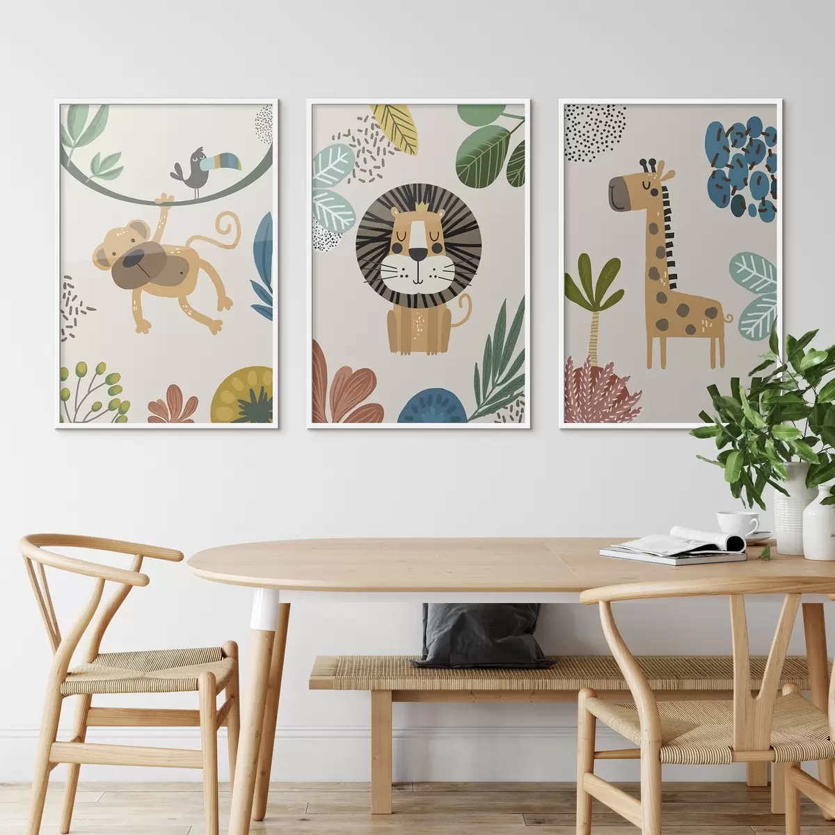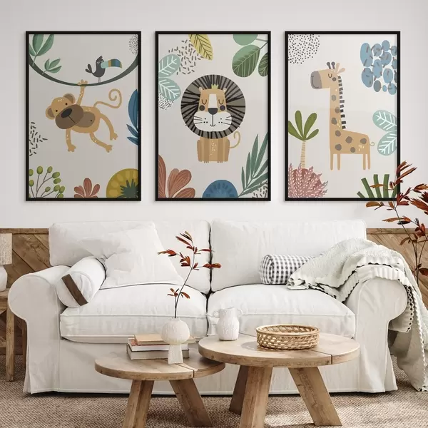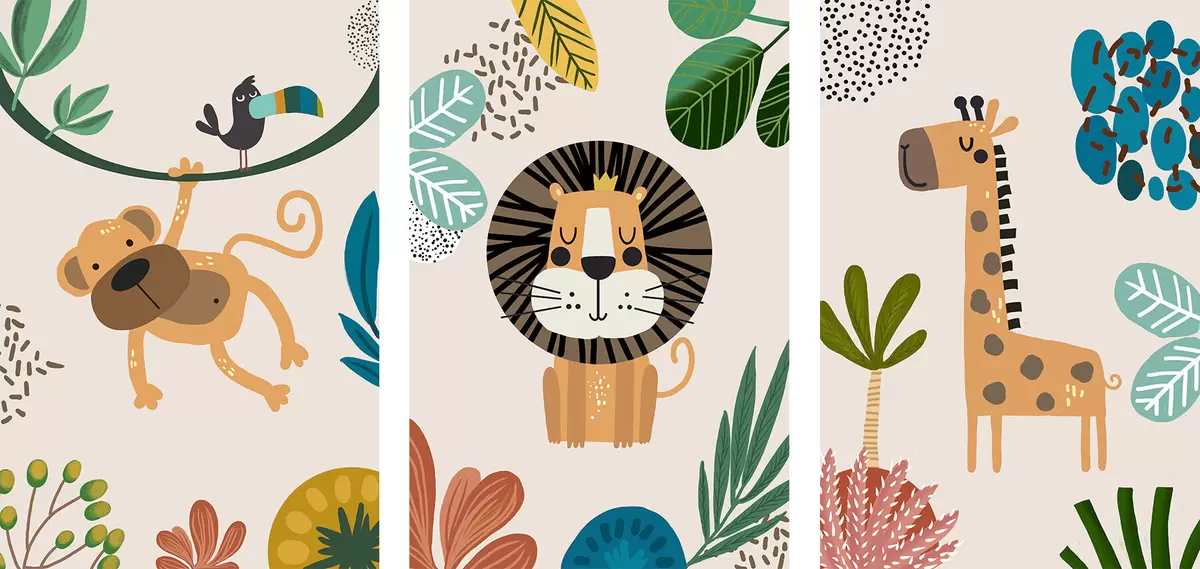 Poster Animaux dans la jungle dans le style du safari, boho : singe, lion, girafe Nr d00332