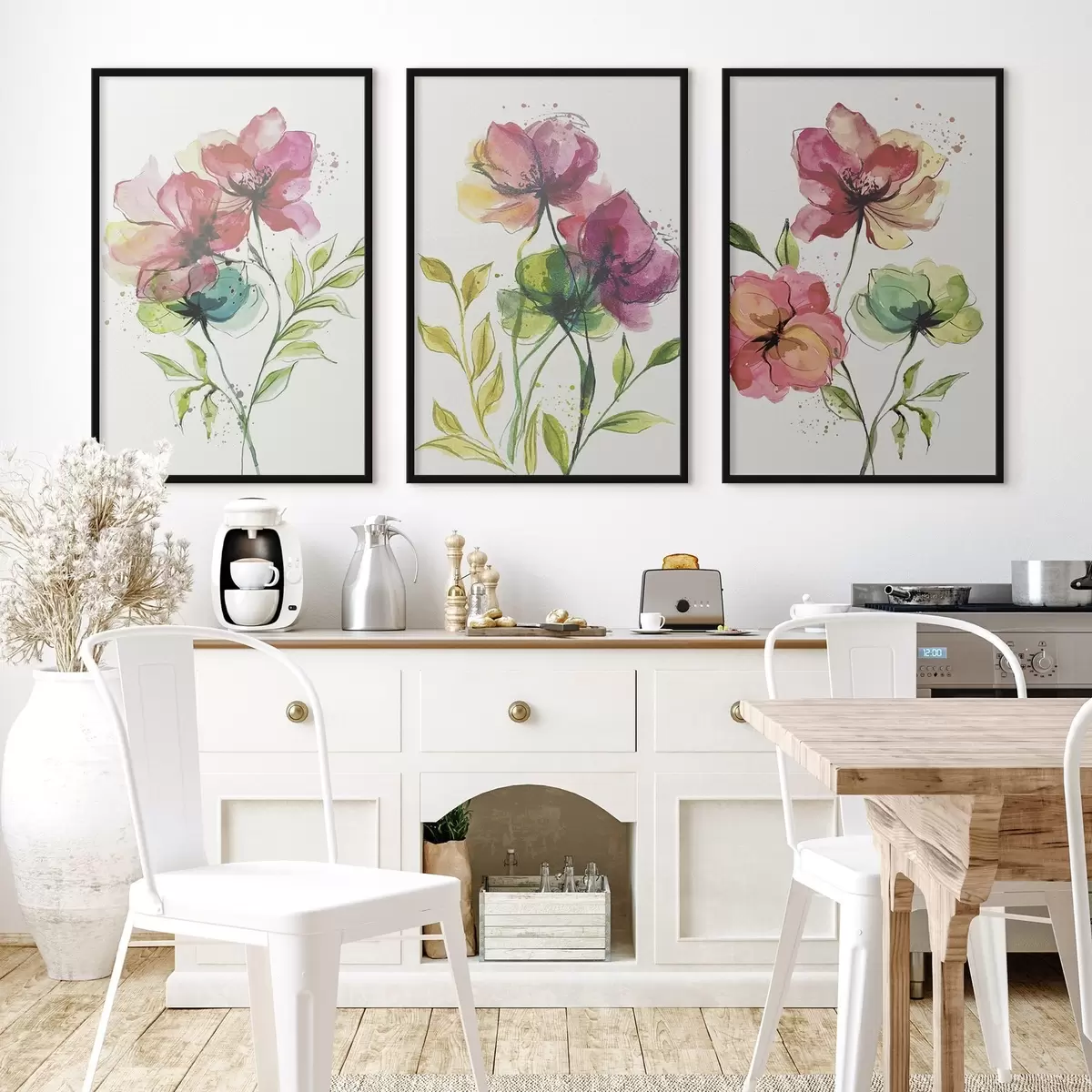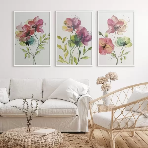 Poster Fleurs délicates à l'aquarelle avec des éclaboussures de peinture Nr d00340