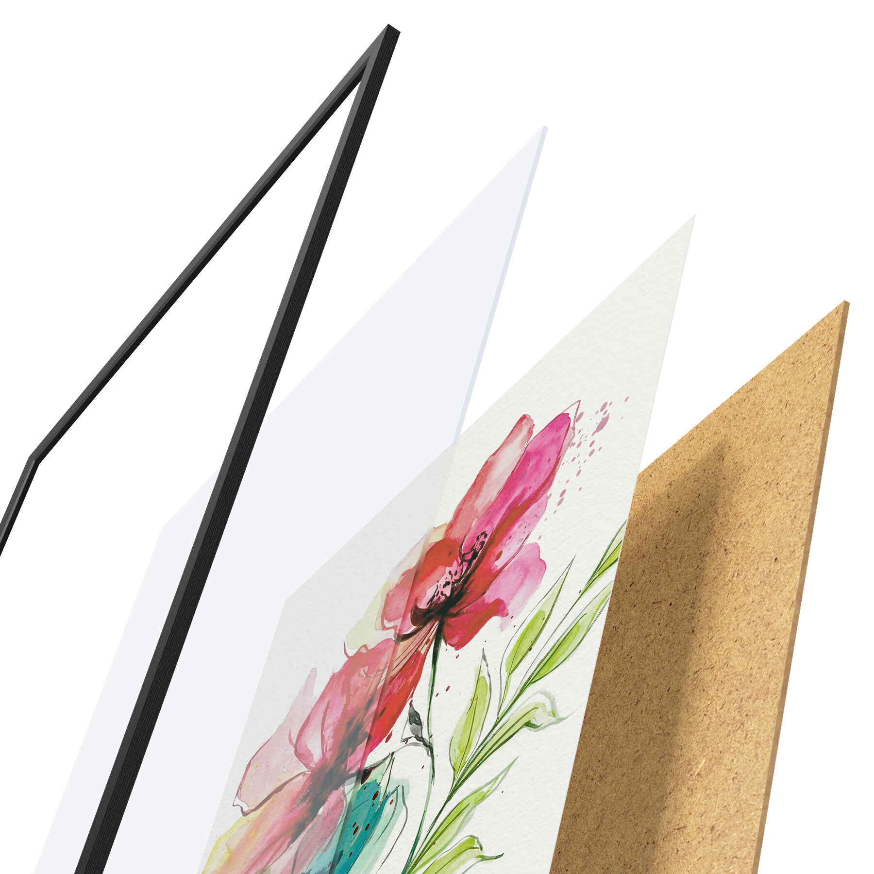 L’affiche encadrée est composée d’un cadre, d’un plexiglas, d’une image imprimée et d’un support en aggloméré. Elle est prête à être accrochée au mur grâce aux fixations situées à l’arrière.