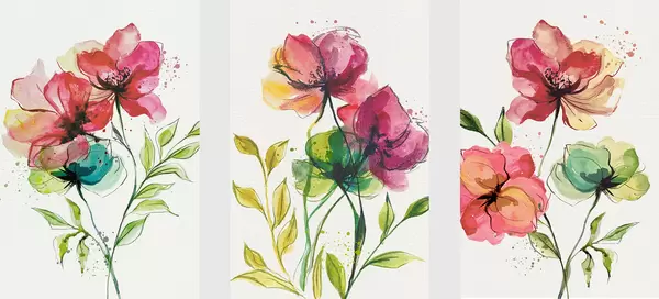Poster Fleurs délicates à l'aquarelle avec des éclaboussures de peinture Nr d00340