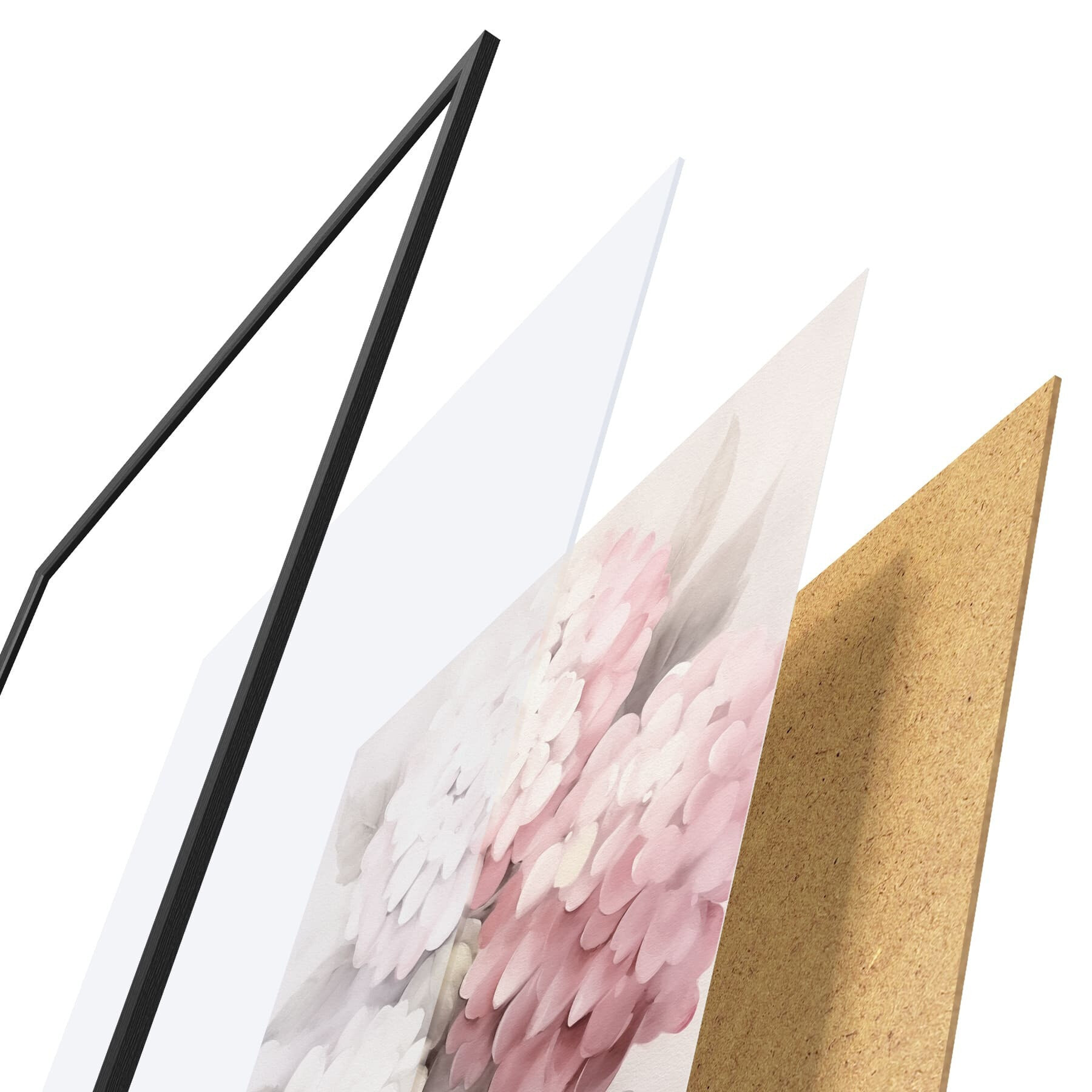 L’affiche encadrée est composée d’un cadre, d’un plexiglas, d’une image imprimée et d’un support en aggloméré. Elle est prête à être accrochée au mur grâce aux fixations situées à l’arrière.