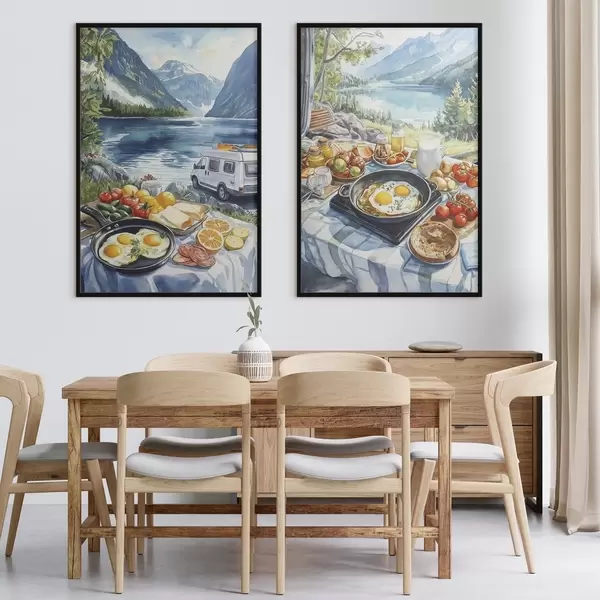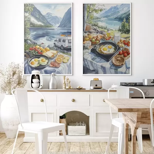 Poster Petit déjeuner dans la nature, voyage, vie en plein air, style aquarelle, Norvège Nr d00404