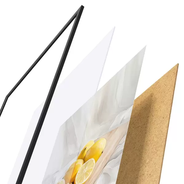 L’affiche encadrée est composée d’un cadre, d’un plexiglas, d’une image imprimée et d’un support en aggloméré. Elle est prête à être accrochée au mur grâce aux fixations situées à l’arrière.