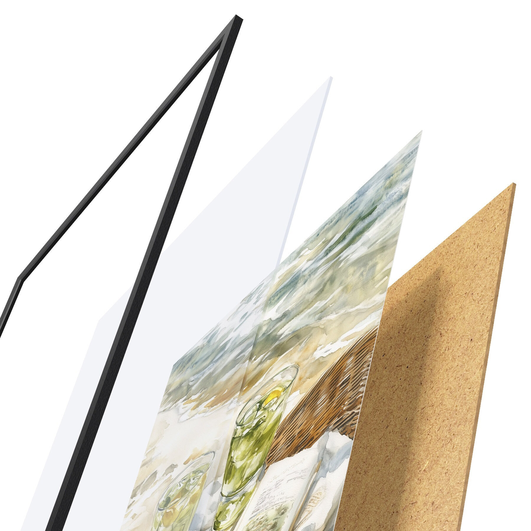 Poster Cocktails sur la plage, dessin à l'aquarelle, océan, pique-nique d'été Nr d00417