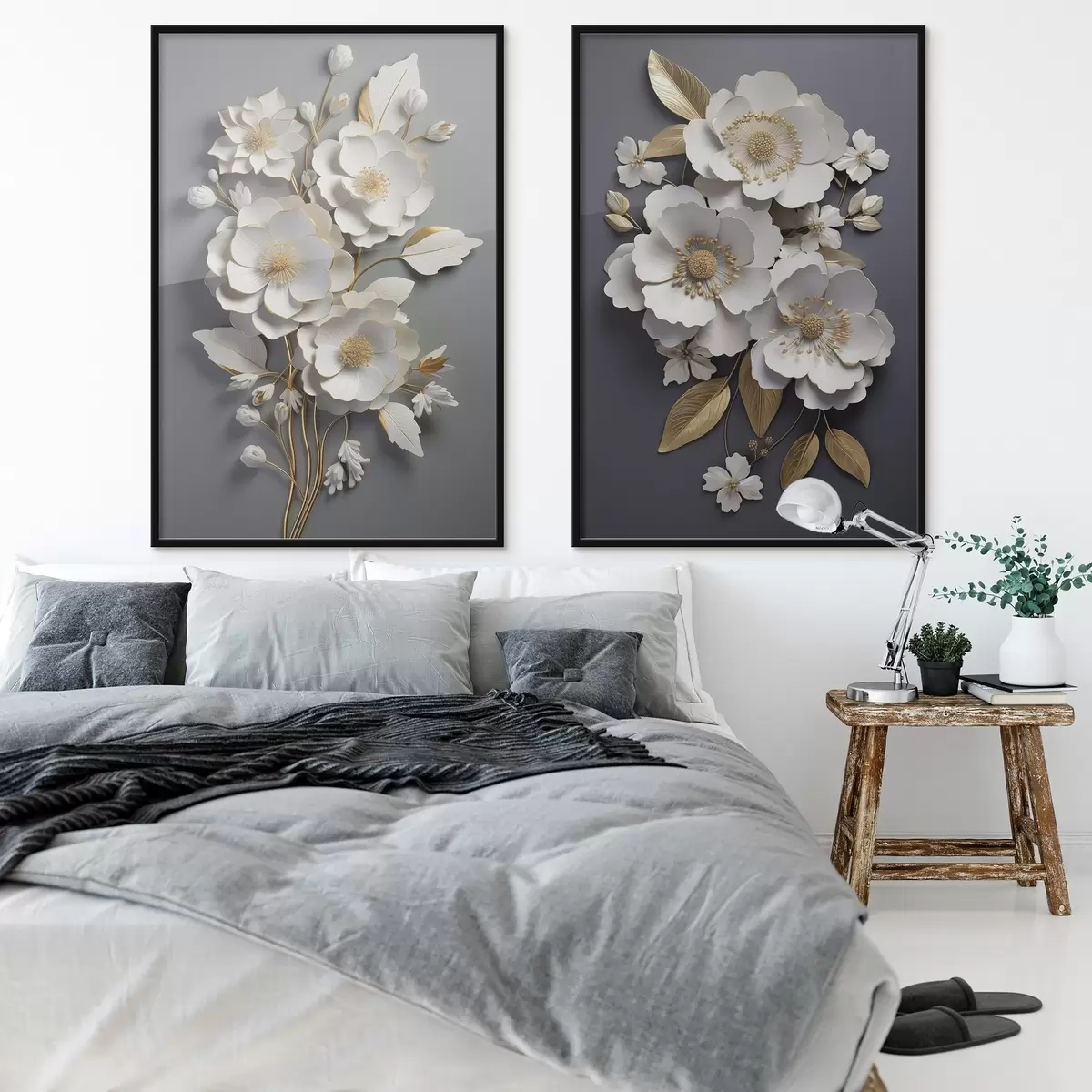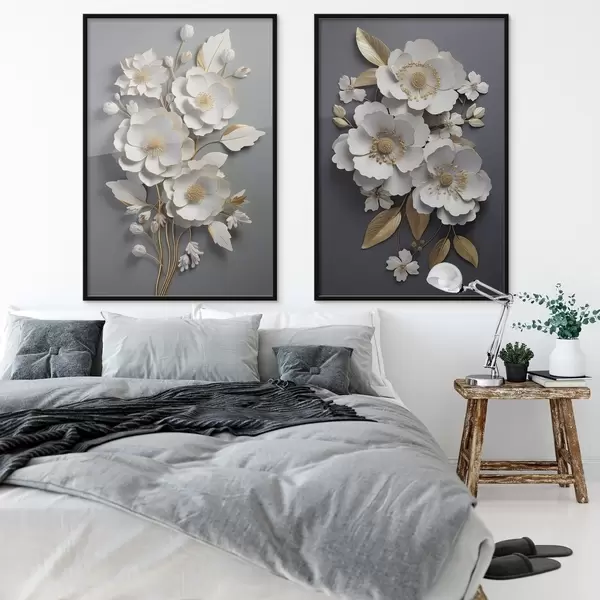 Poster Composition de branches de fleurs sur fond sombre Nr d00423