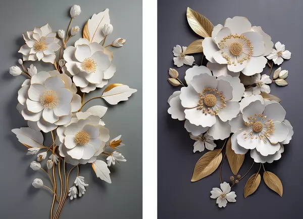 Poster Composition de branches de fleurs sur fond sombre Nr d00423