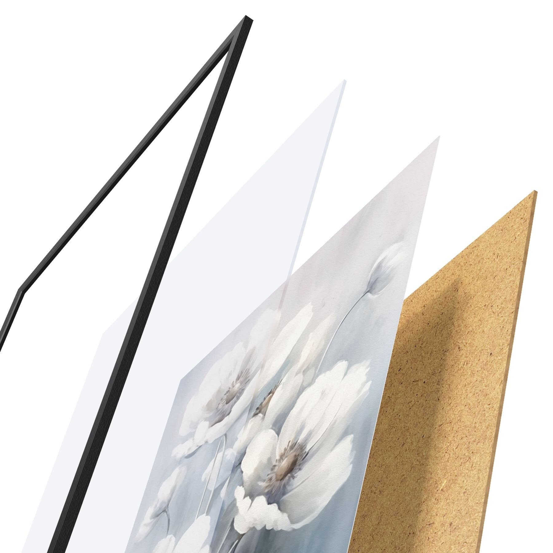 L’affiche encadrée est composée d’un cadre, d’un plexiglas, d’une image imprimée et d’un support en aggloméré. Elle est prête à être accrochée au mur grâce aux fixations situées à l’arrière.