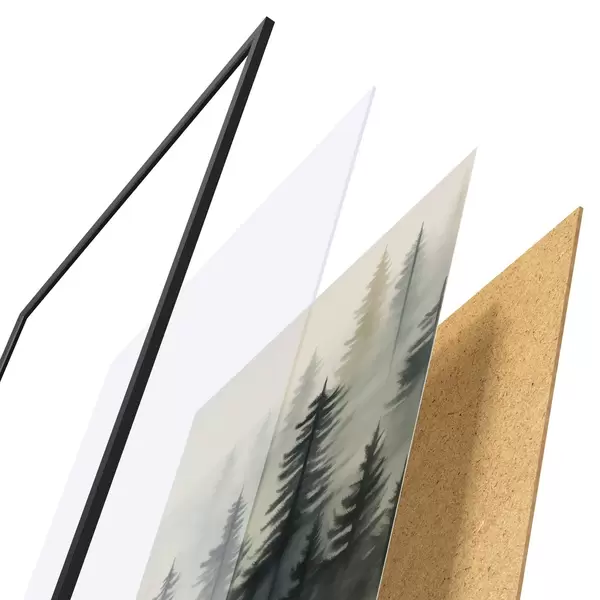 L’affiche encadrée est composée d’un cadre, d’un plexiglas, d’une image imprimée et d’un support en aggloméré. Elle est prête à être accrochée au mur grâce aux fixations situées à l’arrière.