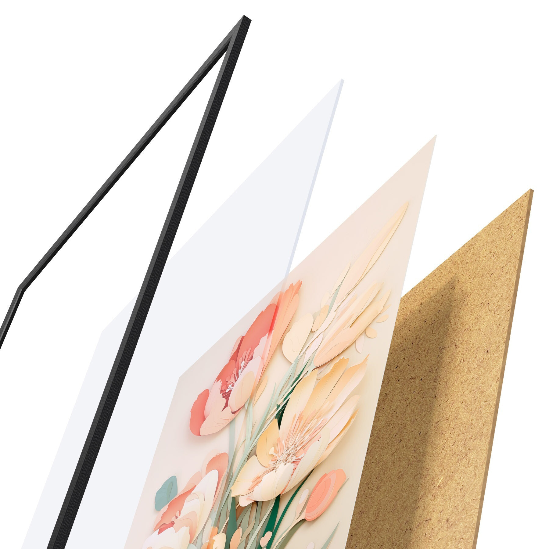 L’affiche encadrée est composée d’un cadre, d’un plexiglas, d’une image imprimée et d’un support en aggloméré. Elle est prête à être accrochée au mur grâce aux fixations situées à l’arrière.
