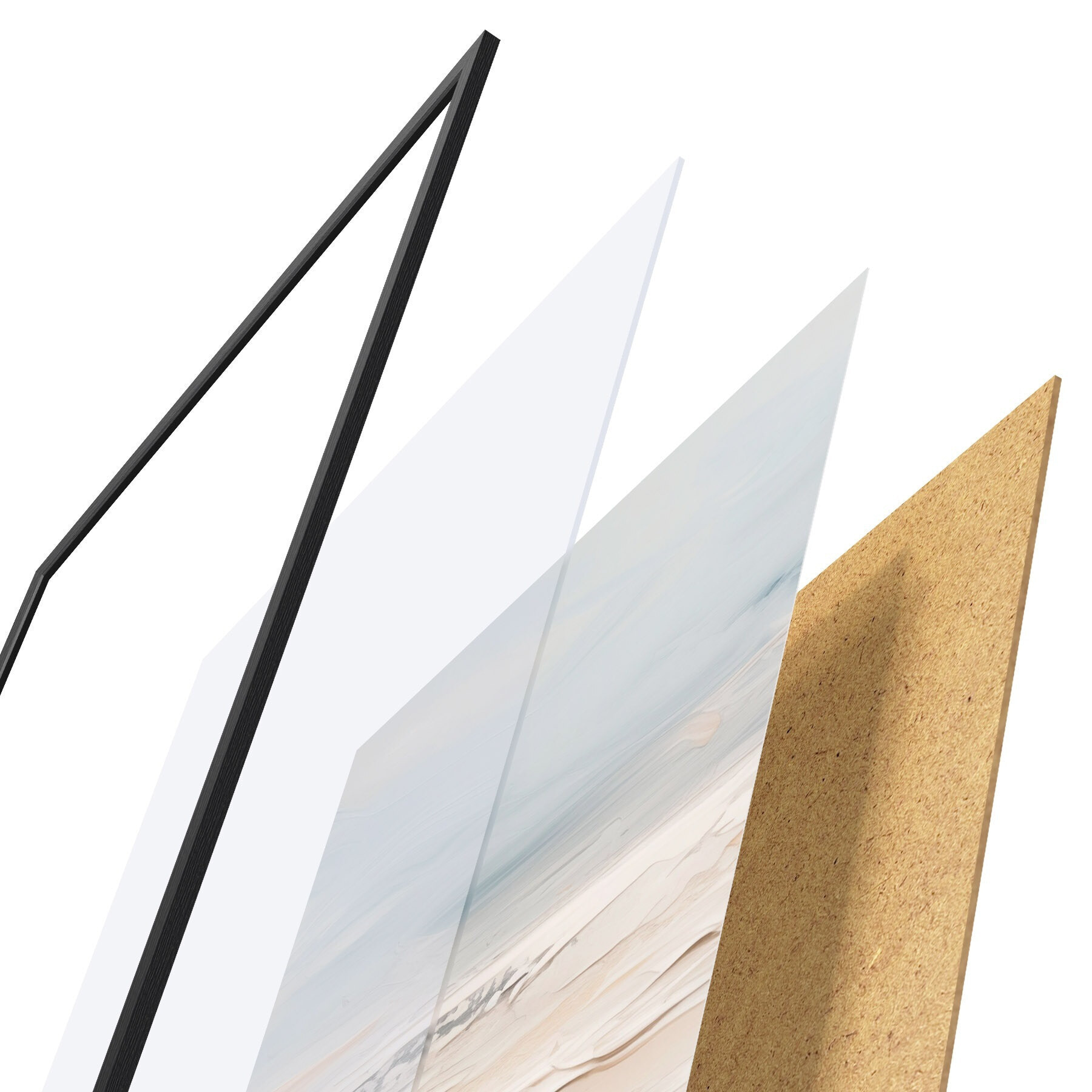 L’affiche encadrée est composée d’un cadre, d’un plexiglas, d’une image imprimée et d’un support en aggloméré. Elle est prête à être accrochée au mur grâce aux fixations situées à l’arrière.