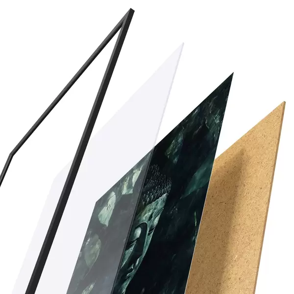 L’affiche encadrée est composée d’un cadre, d’un plexiglas, d’une image imprimée et d’un support en aggloméré. Elle est prête à être accrochée au mur grâce aux fixations situées à l’arrière.