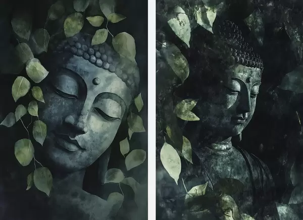 Poster Bouddha vert dans des feuilles tropicales, style aquarelle Nr d00451