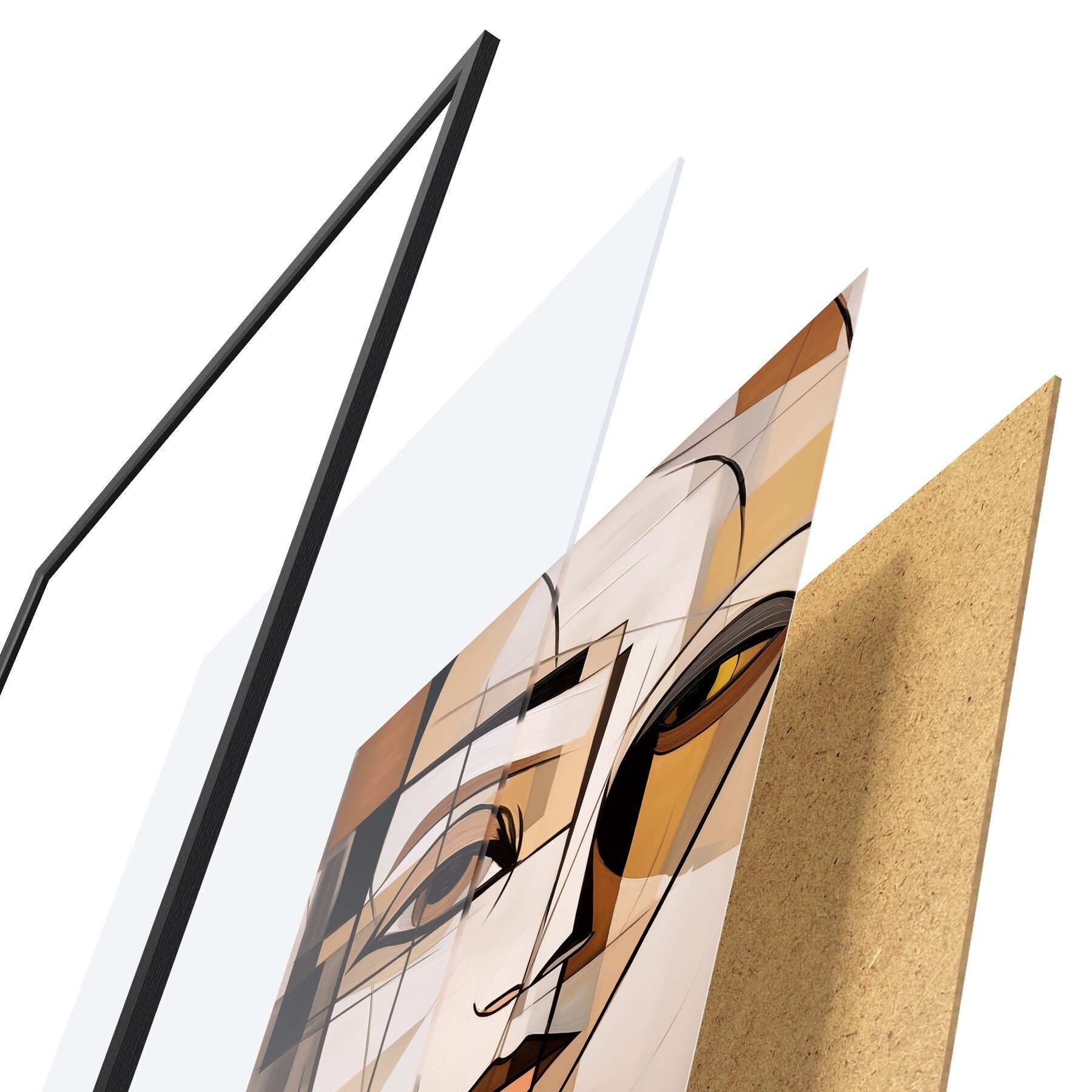 L’affiche encadrée est composée d’un cadre, d’un plexiglas, d’une image imprimée et d’un support en aggloméré. Elle est prête à être accrochée au mur grâce aux fixations situées à l’arrière.