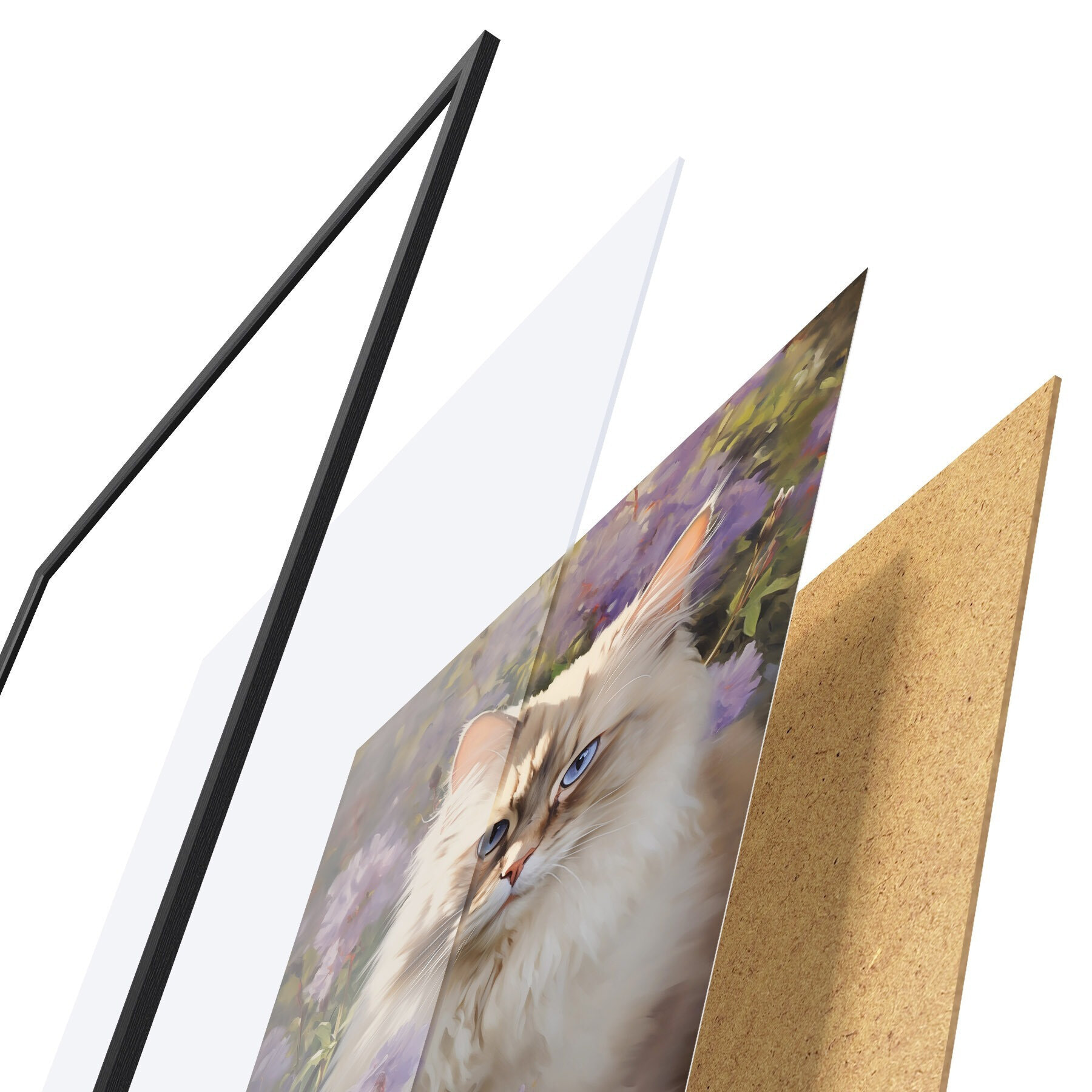 L’affiche encadrée est composée d’un cadre, d’un plexiglas, d’une image imprimée et d’un support en aggloméré. Elle est prête à être accrochée au mur grâce aux fixations situées à l’arrière.