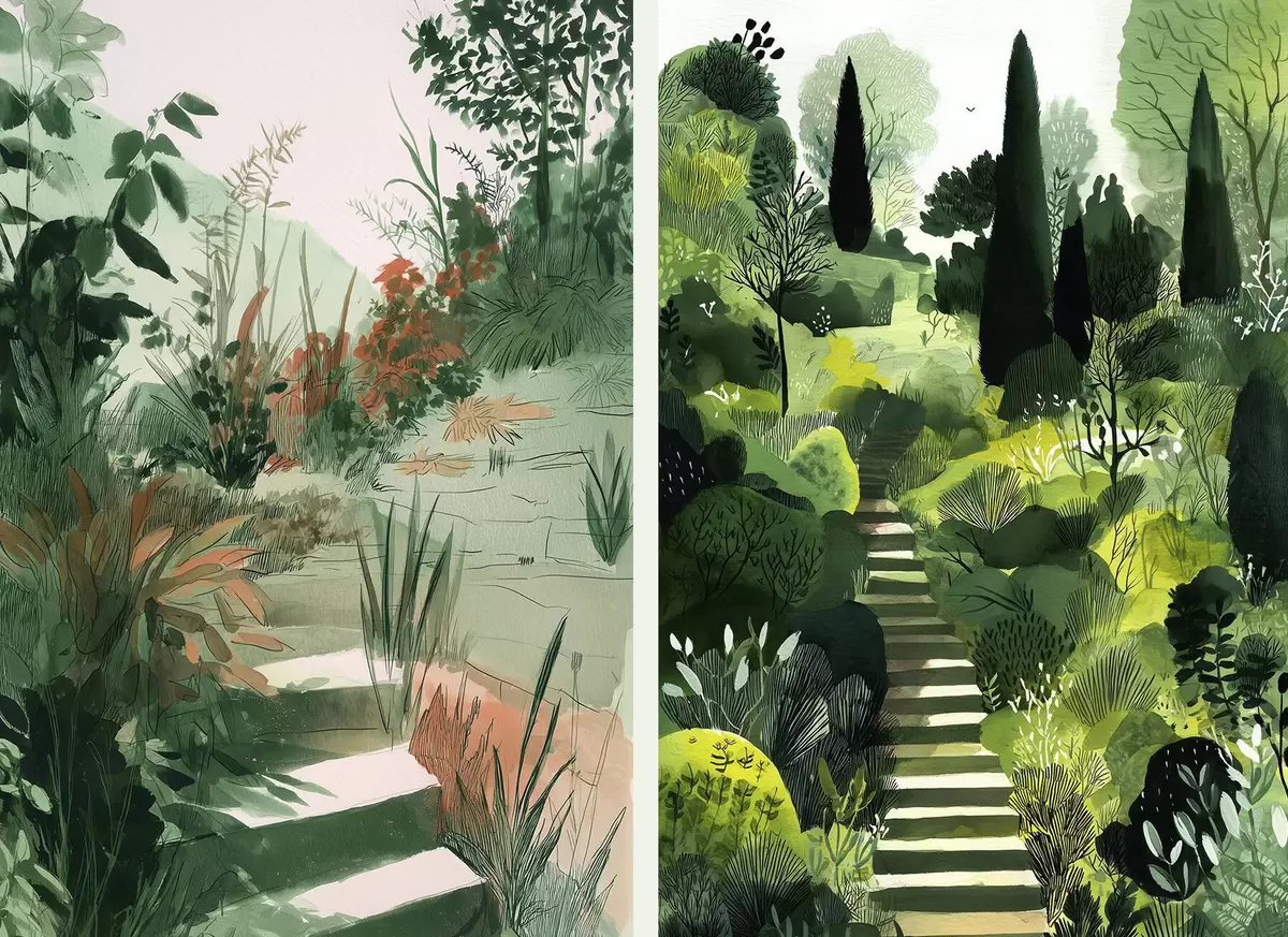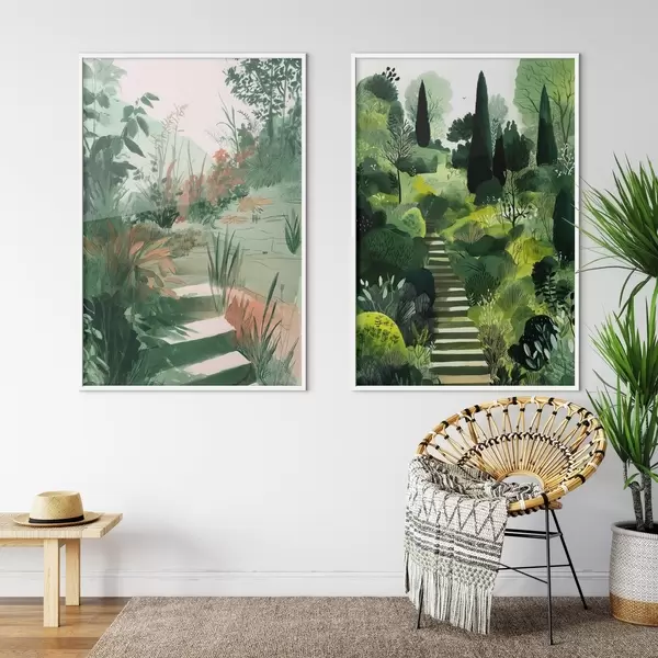 Poster Jardin oriental verdoyant avec des buissons et des arbres Nr d00478