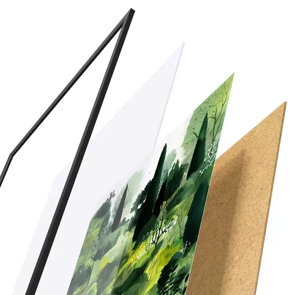 L’affiche encadrée est composée d’un cadre, d’un plexiglas, d’une image imprimée et d’un support en aggloméré. Elle est prête à être accrochée au mur grâce aux fixations situées à l’arrière.