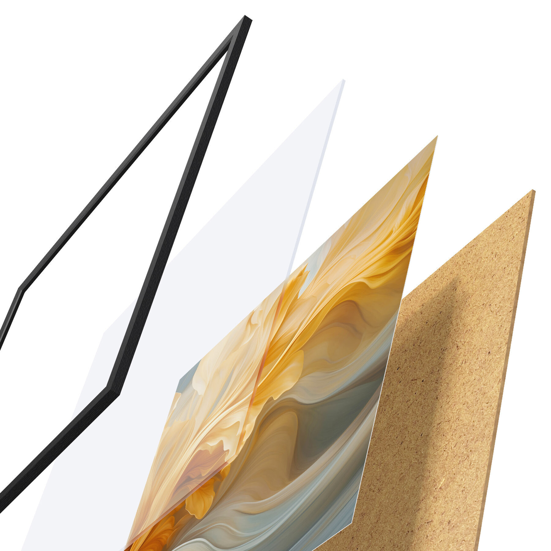 L’affiche encadrée est composée d’un cadre, d’un plexiglas, d’une image imprimée et d’un support en aggloméré. Elle est prête à être accrochée au mur grâce aux fixations situées à l’arrière.