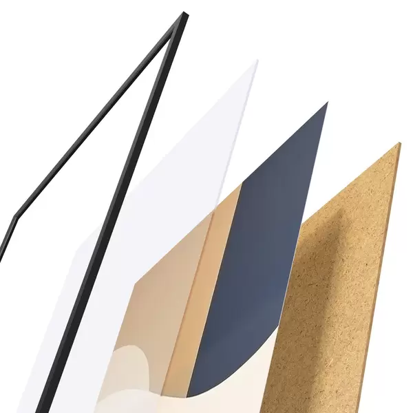 L’affiche encadrée est composée d’un cadre, d’un plexiglas, d’une image imprimée et d’un support en aggloméré. Elle est prête à être accrochée au mur grâce aux fixations situées à l’arrière.