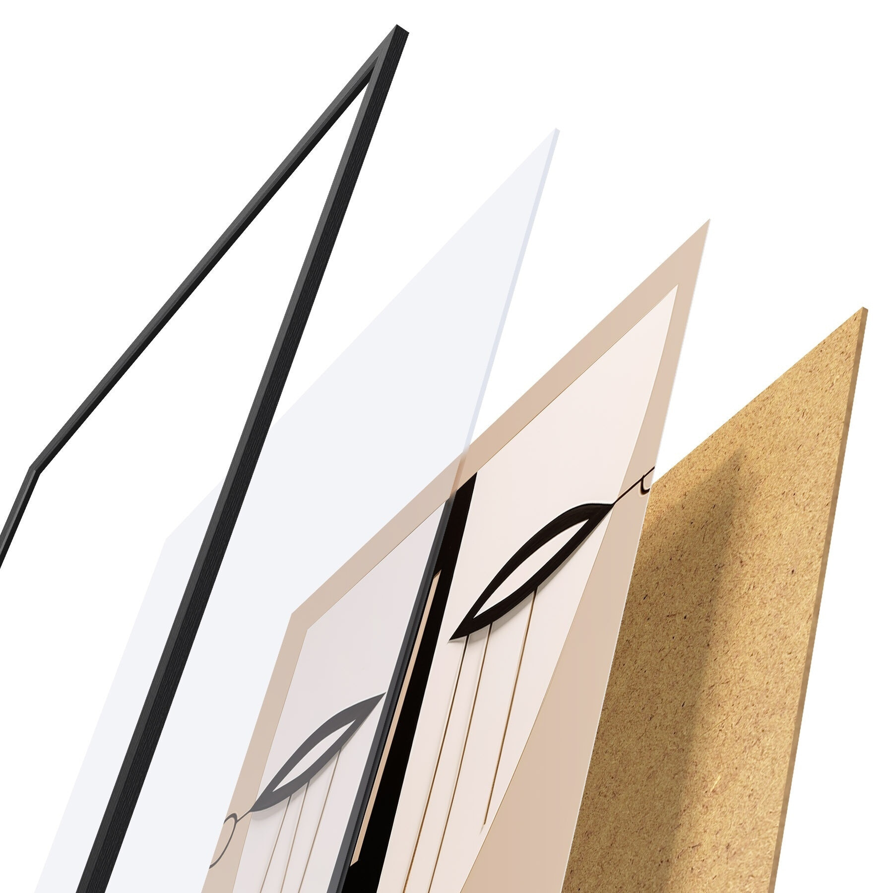 L’affiche encadrée est composée d’un cadre, d’un plexiglas, d’une image imprimée et d’un support en aggloméré. Elle est prête à être accrochée au mur grâce aux fixations situées à l’arrière.