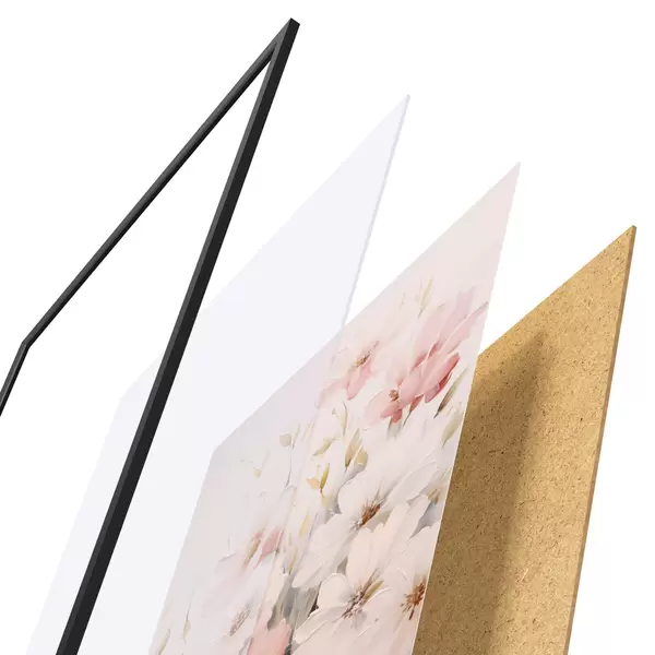 L’affiche encadrée est composée d’un cadre, d’un plexiglas, d’une image imprimée et d’un support en aggloméré. Elle est prête à être accrochée au mur grâce aux fixations situées à l’arrière.