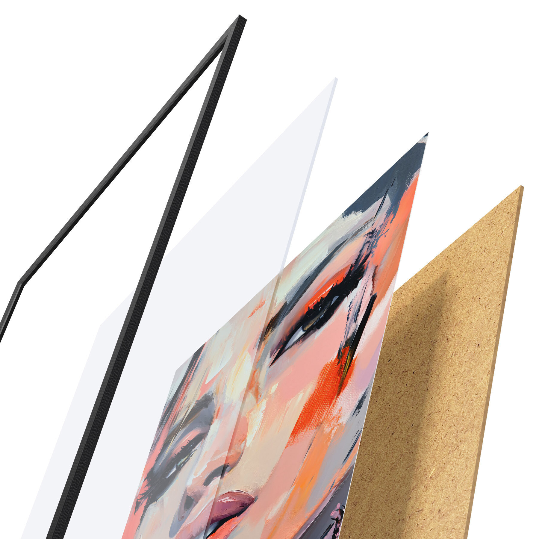 L’affiche encadrée est composée d’un cadre, d’un plexiglas, d’une image imprimée et d’un support en aggloméré. Elle est prête à être accrochée au mur grâce aux fixations situées à l’arrière.