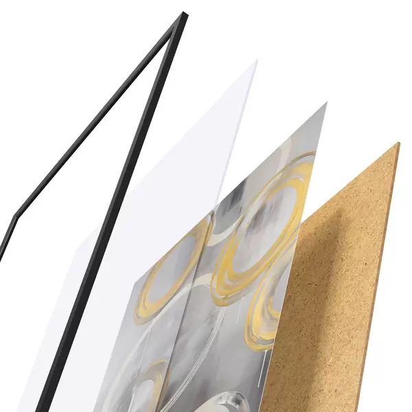 L’affiche encadrée est composée d’un cadre, d’un plexiglas, d’une image imprimée et d’un support en aggloméré. Elle est prête à être accrochée au mur grâce aux fixations situées à l’arrière.