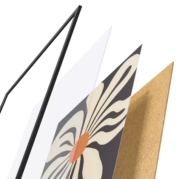 L’affiche encadrée est composée d’un cadre, d’un plexiglas, d’une image imprimée et d’un support en aggloméré. Elle est prête à être accrochée au mur grâce aux fixations situées à l’arrière.