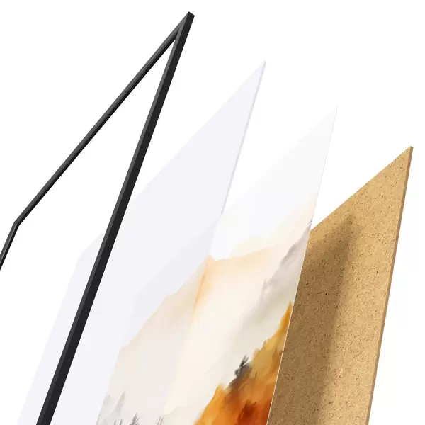 L’affiche encadrée est composée d’un cadre, d’un plexiglas, d’une image imprimée et d’un support en aggloméré. Elle est prête à être accrochée au mur grâce aux fixations situées à l’arrière.