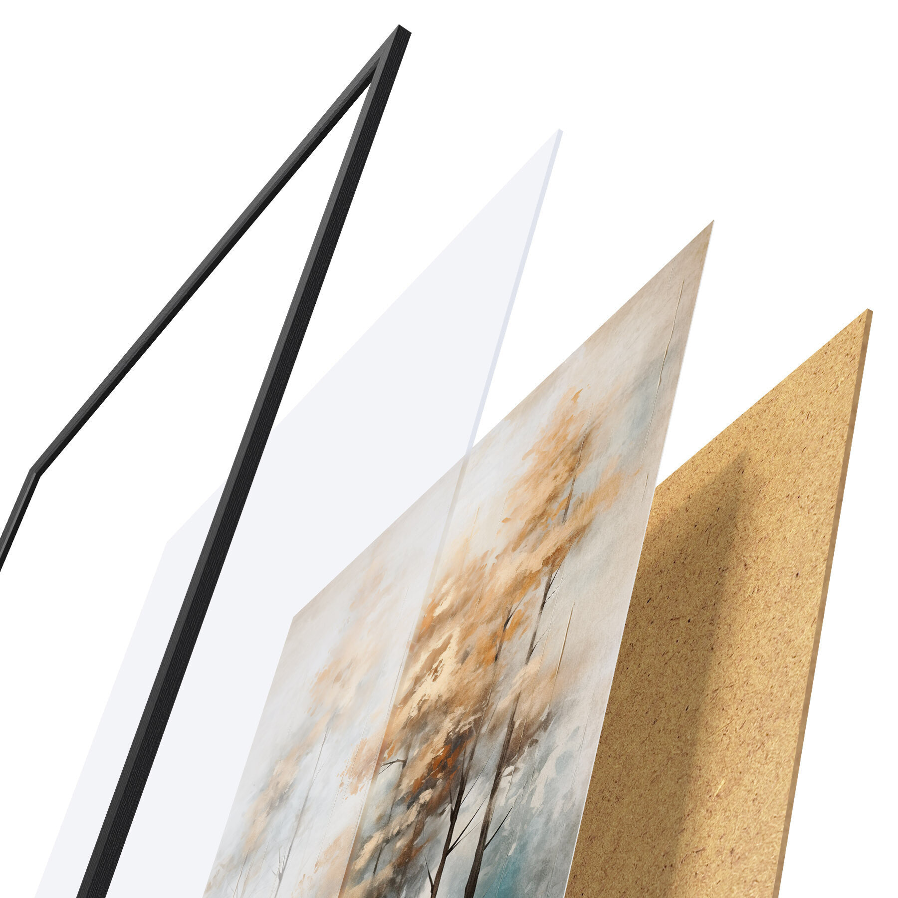 L’affiche encadrée est composée d’un cadre, d’un plexiglas, d’une image imprimée et d’un support en aggloméré. Elle est prête à être accrochée au mur grâce aux fixations situées à l’arrière.