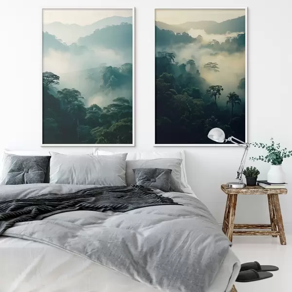 Poster Forêt tropicale avec des arbres verdoyants et une épaisse couche de brume, créant un environnement atmosphérique Nr d00529