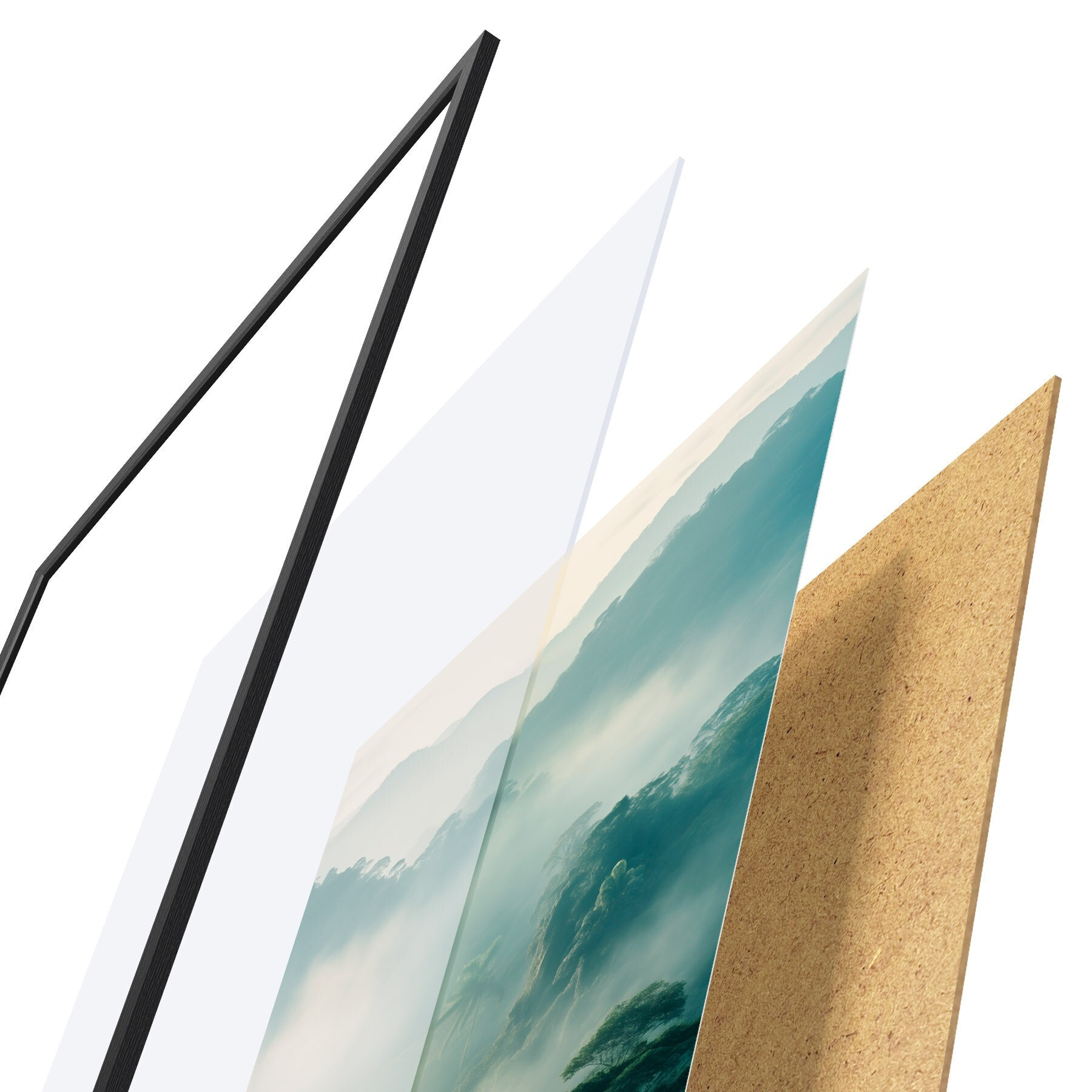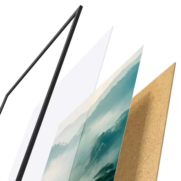 L’affiche encadrée est composée d’un cadre, d’un plexiglas, d’une image imprimée et d’un support en aggloméré. Elle est prête à être accrochée au mur grâce aux fixations situées à l’arrière.