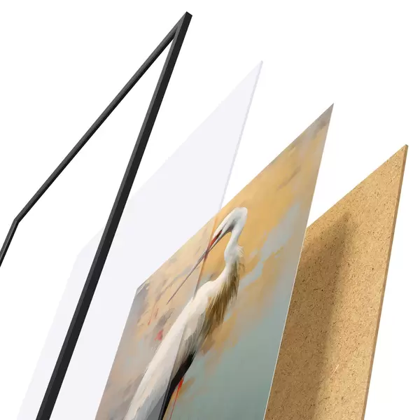 L’affiche encadrée est composée d’un cadre, d’un plexiglas, d’une image imprimée et d’un support en aggloméré. Elle est prête à être accrochée au mur grâce aux fixations situées à l’arrière.