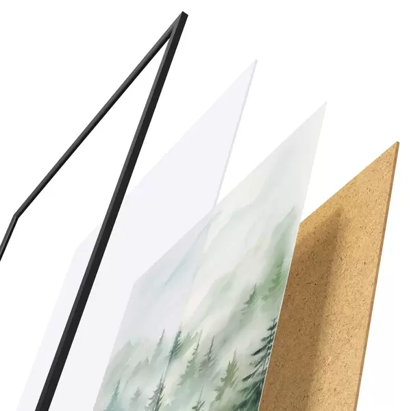 L’affiche encadrée est composée d’un cadre, d’un plexiglas, d’une image imprimée et d’un support en aggloméré. Elle est prête à être accrochée au mur grâce aux fixations situées à l’arrière.