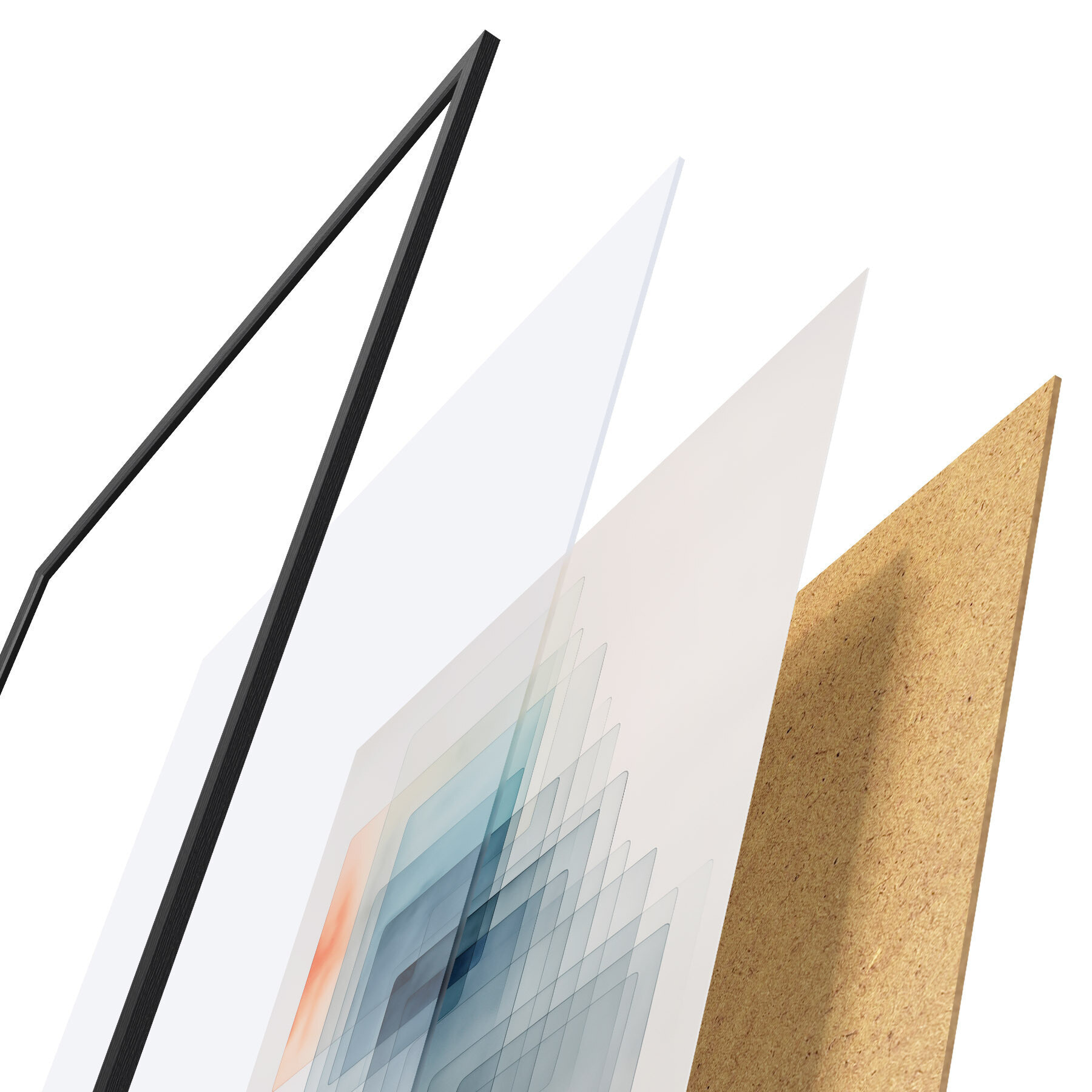 L’affiche encadrée est composée d’un cadre, d’un plexiglas, d’une image imprimée et d’un support en aggloméré. Elle est prête à être accrochée au mur grâce aux fixations situées à l’arrière.