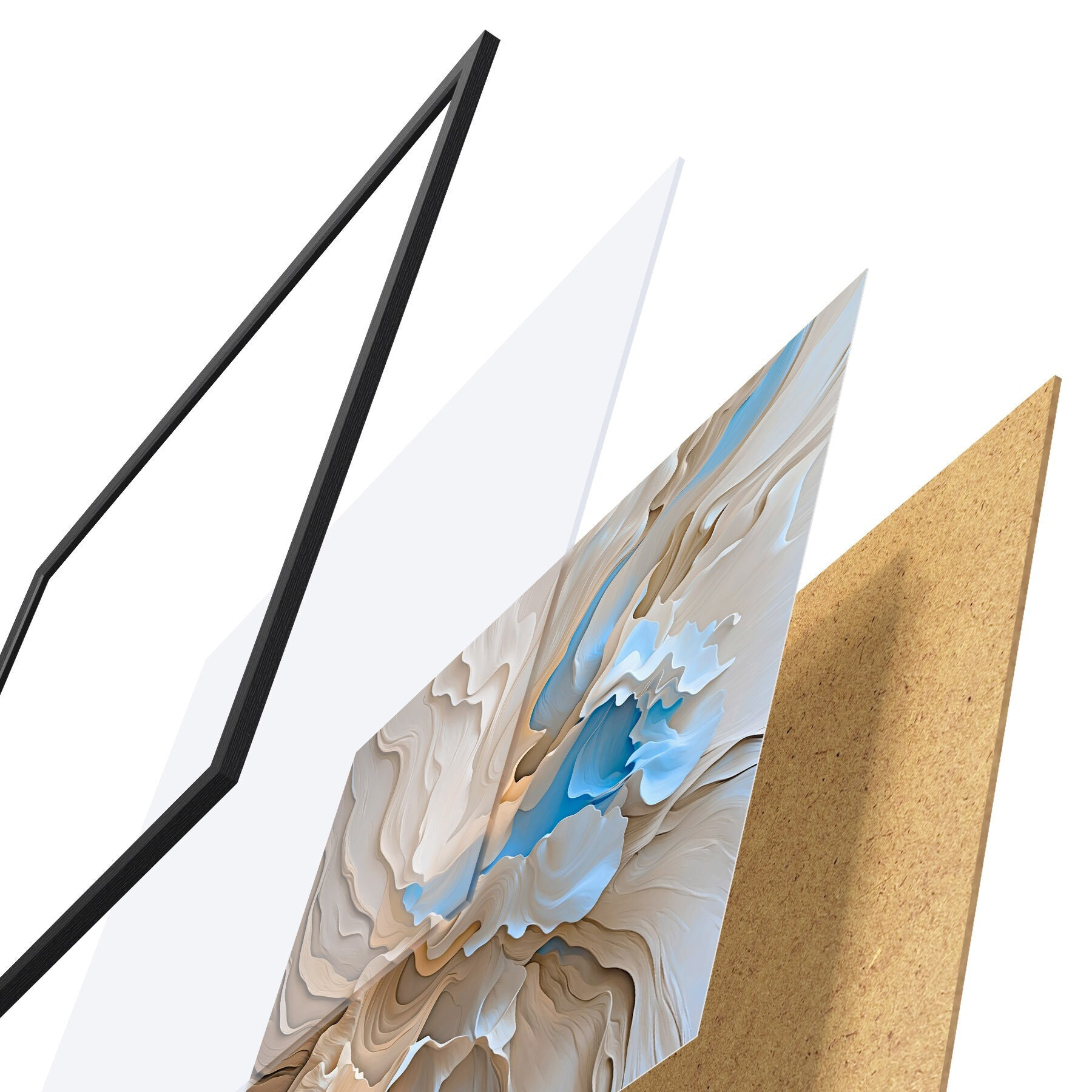 L’affiche encadrée est composée d’un cadre, d’un plexiglas, d’une image imprimée et d’un support en aggloméré. Elle est prête à être accrochée au mur grâce aux fixations situées à l’arrière.