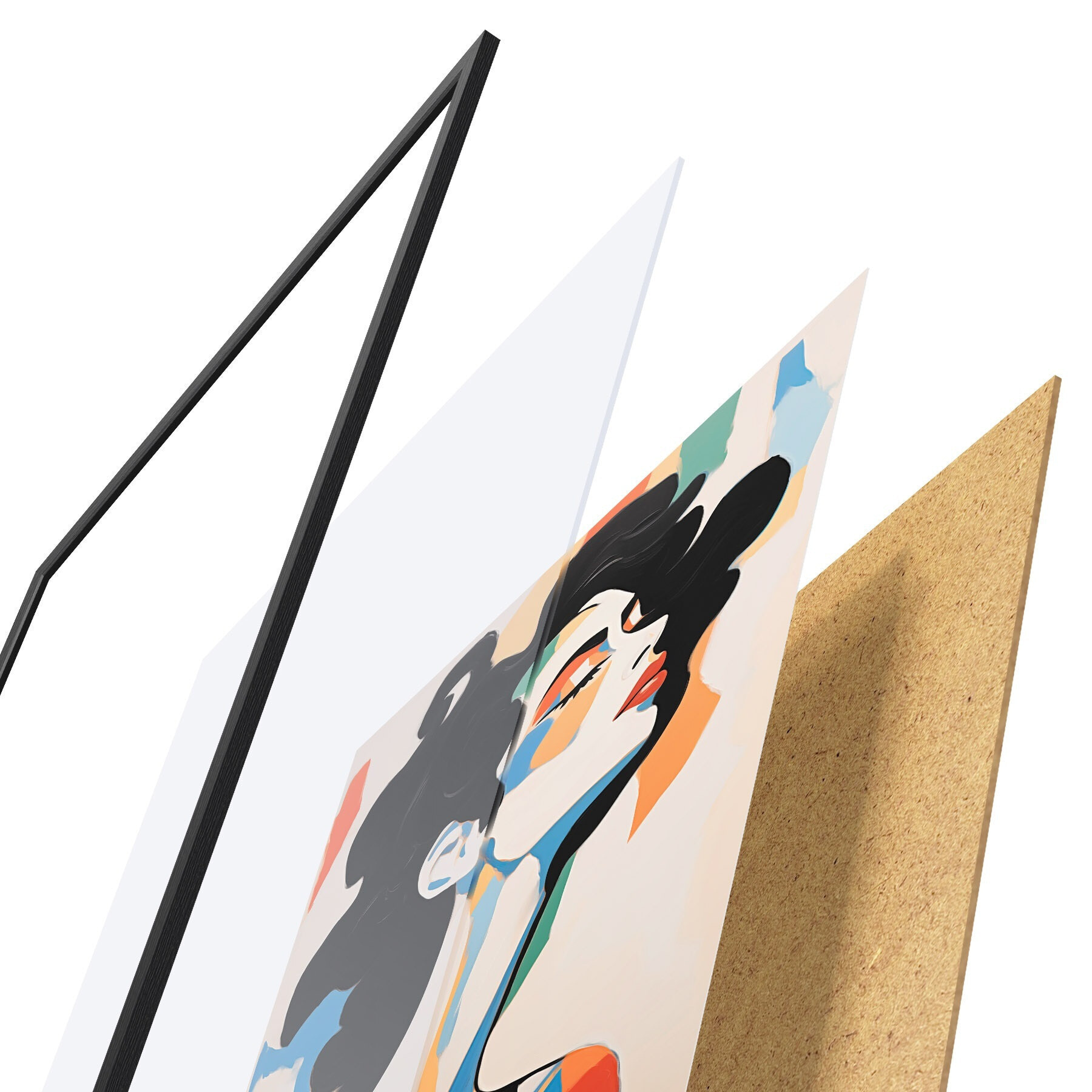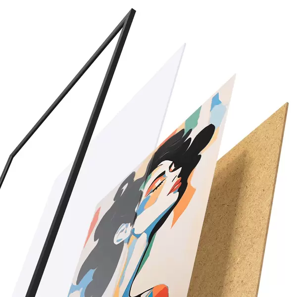 L’affiche encadrée est composée d’un cadre, d’un plexiglas, d’une image imprimée et d’un support en aggloméré. Elle est prête à être accrochée au mur grâce aux fixations situées à l’arrière.